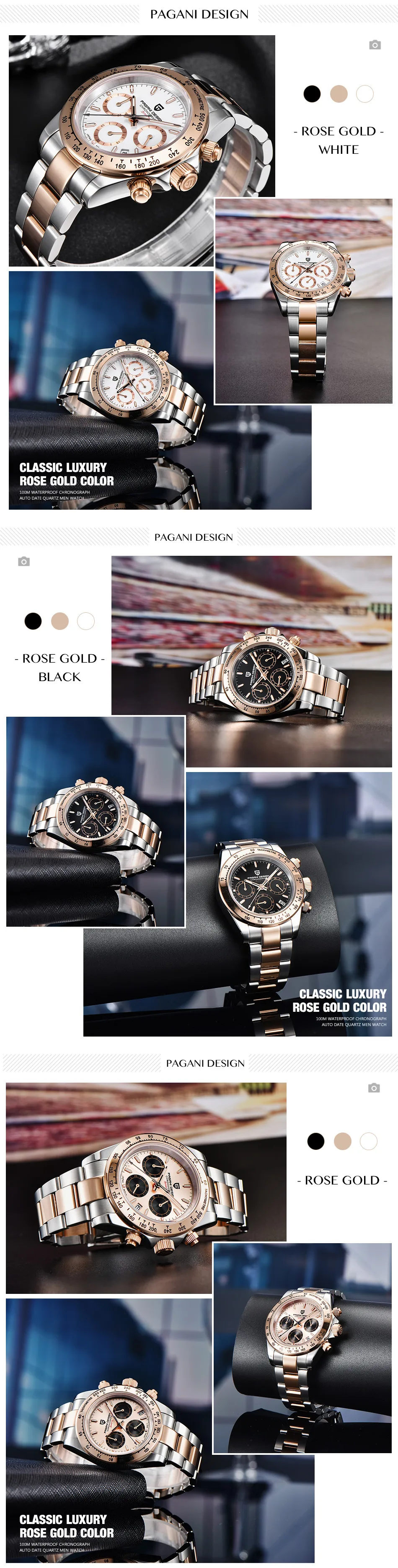 Часы PAGANI DESIGN Мужские кварцевые, роскошные Брендовые спортивные модные с японским механизмом, из нержавеющей стали, VK63