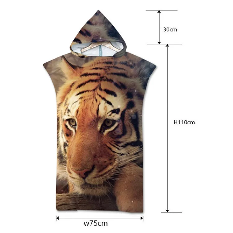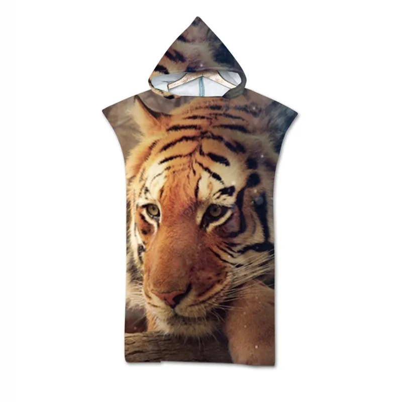 Пляжное полотенце с капюшоном и 3D-принтом в виде животных, тигра