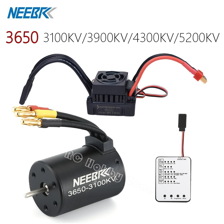 Водонепроницаемый бесщеточный двигатель 3650 3100кв 3900кв 4300кв 5200кв и регулятор скорости 60A с программным автомобилем Combo для 1:10 1:8 RC Car RC Boat