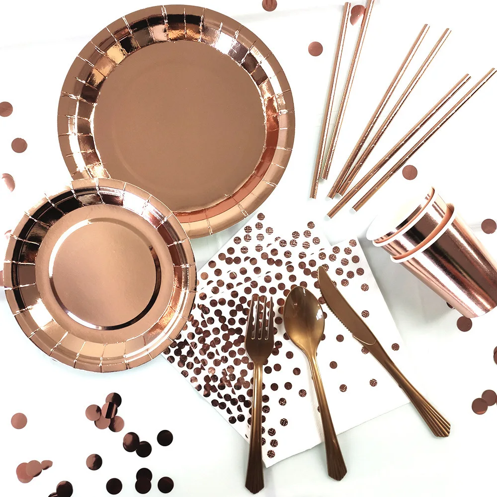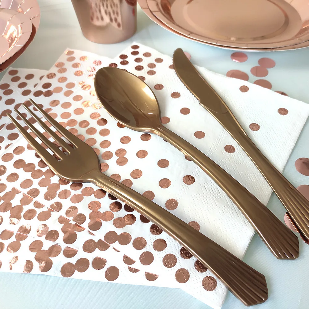 Одноразовый нож и вилка, ложка, посуда для вечеринки, дня рождения, свадьбы, розовое золото, пластиковая Роскошная Посуда для торжественного мероприятия