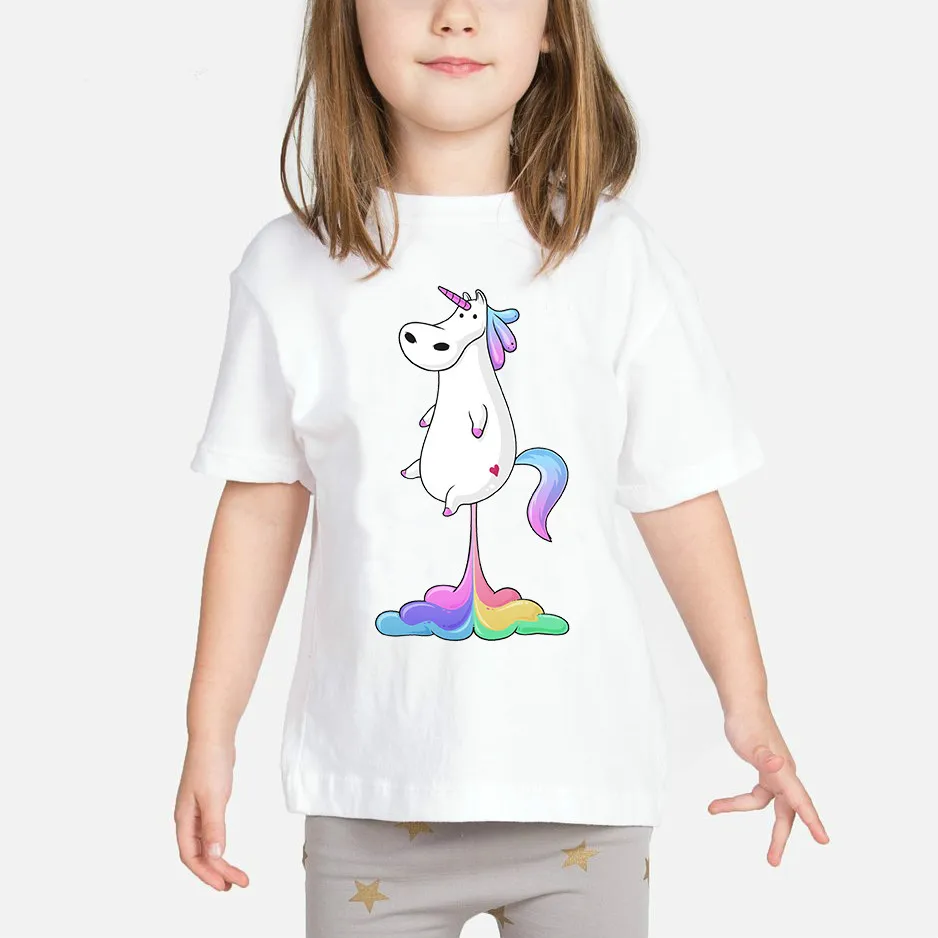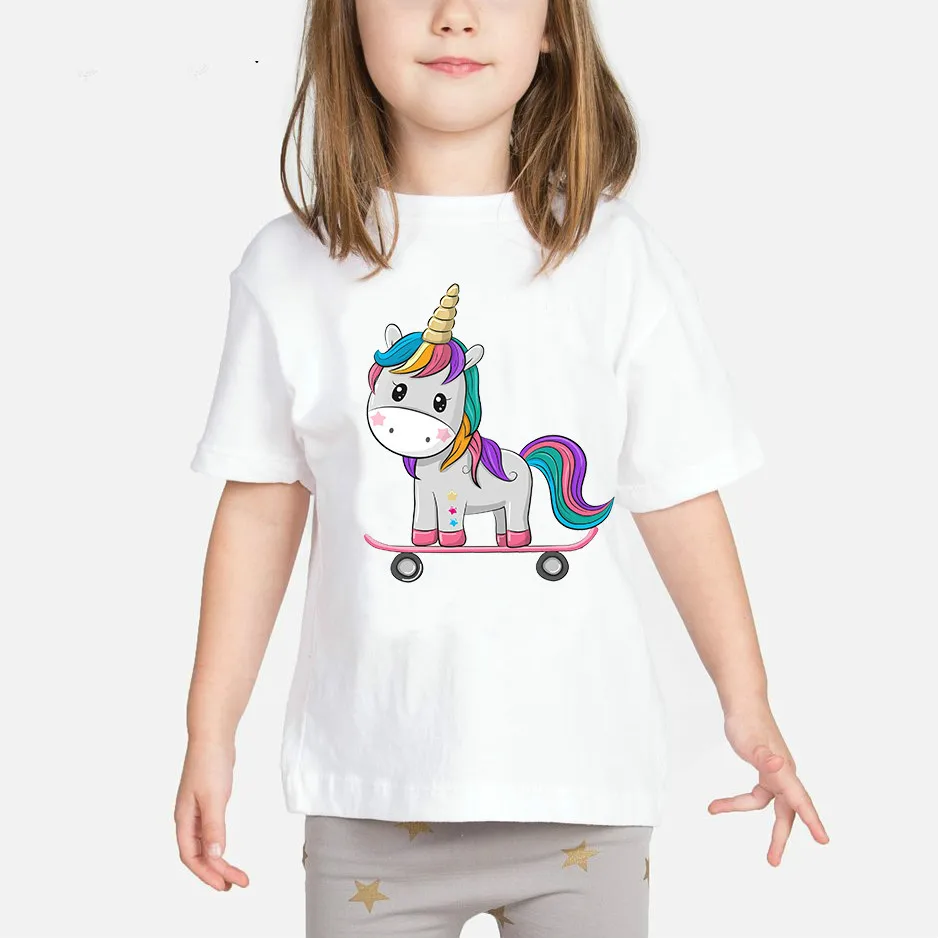 Футболка для маленьких девочек с единорогом, Новинка лета 2019, рубашки, одежда с животным принтом, детские футболки от 2 до 8 лет, топы для малышей