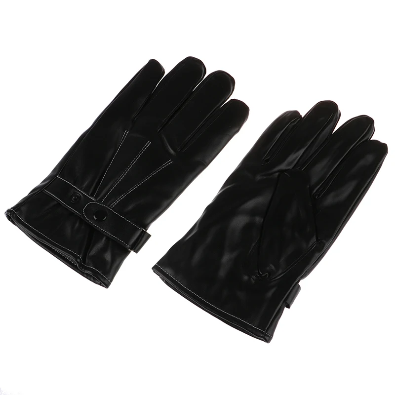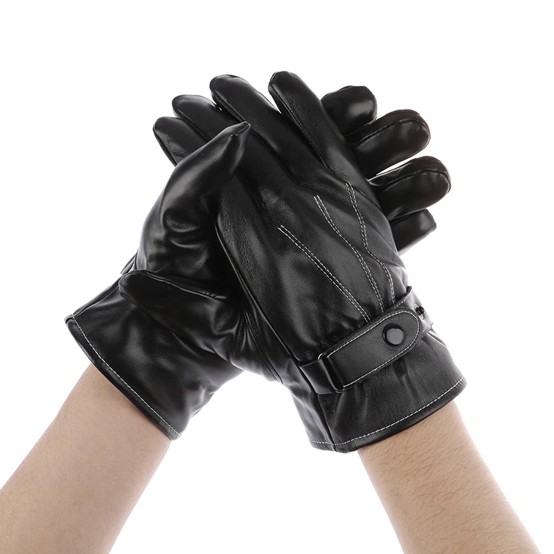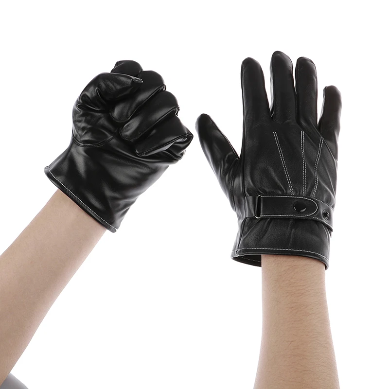 1 пара зимние теплые варежки мужские перчатки из искусственной кожи кашемировые уличные пуговицы для вождения ветрозащитные перчатки
