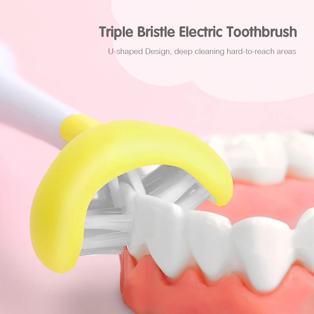 Детская электрическая зубная щетка с U-образной головкой может помочь Детская щетка зубов легко и тщательно. 3 режима чистки и 2-минутный таймер помогают детям сформировать хорошие привычки чистки. Перезаряжаемый и водонепроницаемый дизайн, компактный и портативный для переноски. Особенности: 【Детская электрическая зубная щетка для здорового смайлика】использует усовершенствованный мотор для образования 30000 ударов в минуту, обеспечивает высокую-вибрации скорости превращения зубной пасты в зубной налет для борьбы с мелкими пузырьками. Высокочастотные звуковые волны под разными углами развивают динамическое состояние очистки для глубокой очистки труднодоступных участков. 【 U-образная головка и мягкая щетина 】 U-образная головка изготовлена из резинового чехла и мягкой нейлоновой щетины Dupont. Резиновая крышка может защитить детские нежные зубы от ударов щеткой. А мягкая щетина в сочетании с U-образным дизайном позволяет детям легко чистить зубы во всех направлениях без мертвого угла. 【 3 режима чистки и 2 минуты таймера 】 режим очистки для повседневной жизни, более мягкий режим для начинающих, чувствительный режим для чувствительных зубов. Благодаря функции таймера электрическая зубная щетка поможет детям сформировать хорошие привычки чистки с помощью интеллектуального напоминания о 30 секундах и автоматического отключения через 2 минуты. 【Водонепроницаемый и Перезаряжаемый 】 Уровень водонепроницаемости IPX7, легко моется, поддерживает личную гигиену. Встроенный литиевый аккумулятор емкостью 500 мАч, время работы в чистом режиме составляет около 30-40 дней, что решает проблемы на открытом воздухе. Поставляется с USB-кабелем для зарядки. 【Прочие детали 】вдавливание зубной пасты в U-образную головку щетки сверху. Нескользящая ручка, удобный захват. Поставляется со сменными насадками для щеток, легко устанавливается. Характеристики: Цвет: синий/розовый (необязательно) Материал: АБС + ПК + нейлон Dupont + ТПЭ Номинальное напряжение: 220 В, 50 Гц Мощность: 2,5 Вт Частота вибрации: 30000 раз/мин 3 режима: чистый/мягкий/чувствительный Функция таймера: 2 минуты Уровень водонепроницаемости: IPX7 Встроенный аккумулятор: 1*5 В, 500 мАч, литиевый аккумулятор Время зарядки: около 4-6 часов Время ожидания: мягкий режим (около 100 дней), чистый режим (около 30-40 дней) Рекомендуемый возраст: от 6 лет Размер изделия: 25*20*200 мм/1,0*0,8 * дюйма Вес изделия: 95 г/3,4 унции Посылка: 15*6*6 см/5,9*2,4 * 2.4in Вес посылка: 200 г/7,1 унции Посылка тация: 1 электрическая зубная щетка 1 * Сменная головка щетки 1 * USB-кабель (без вилки)