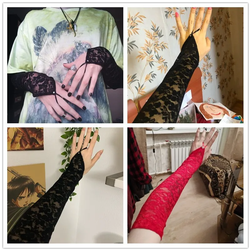 Перчатки Женские однотонные без пальцев, с цветочным принтом, эластичные, до локтя, летние, 1 пара, кружевная перчатка
