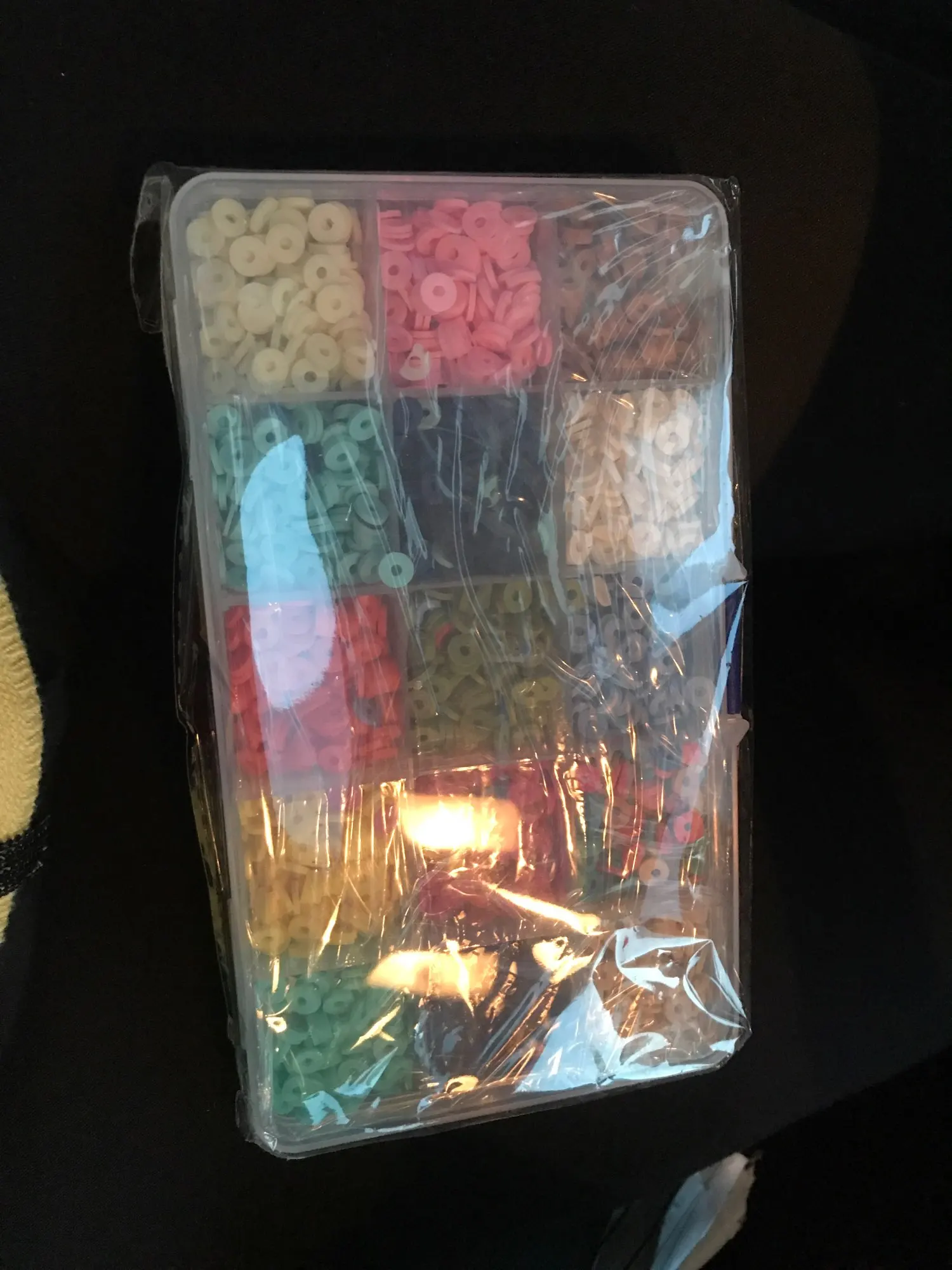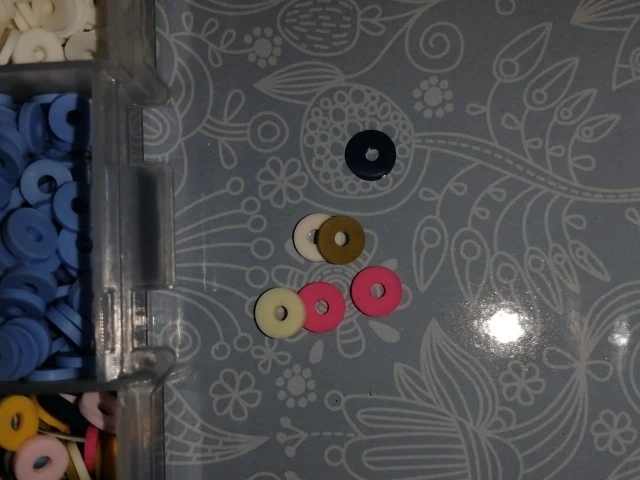 Les petites perles sont en plastique mou, les couleurs correspondent à la photos.