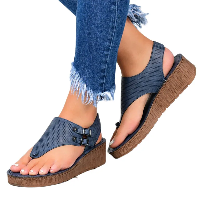 Летние женские босоножки; Женская обувь с открытым носком; Однотонная повседневная обувь на плоской подошве; Сандалии-вьетнамки на танкетке в римском стиле; Пикантная женская обувь