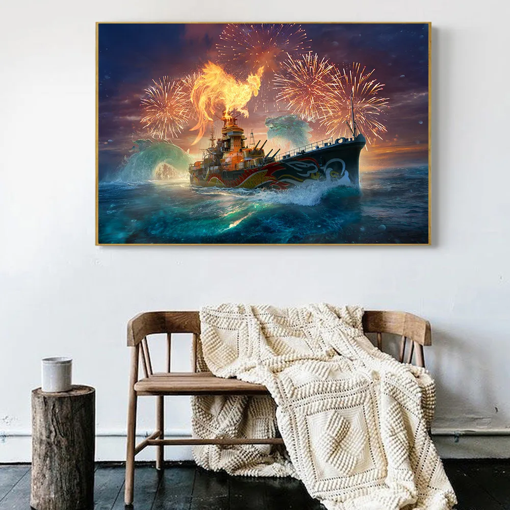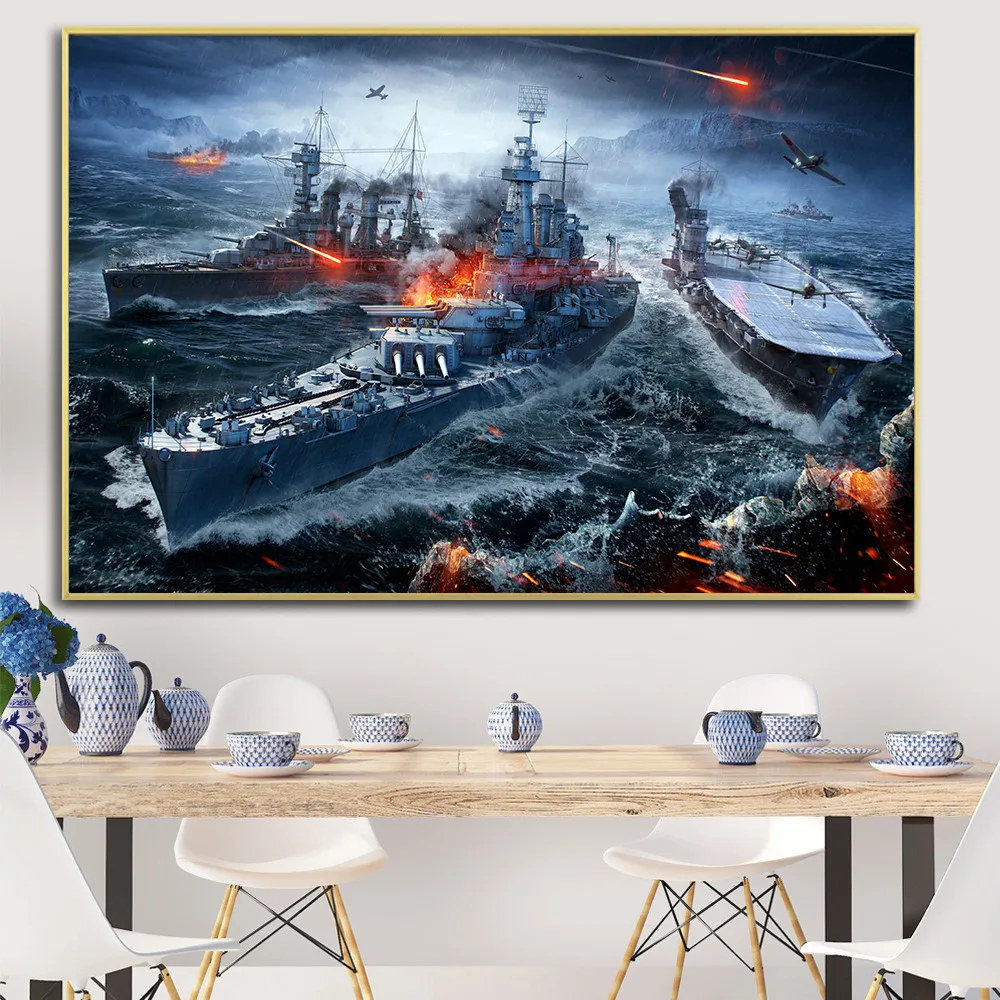 Красивая Аниме Картина маслом на холсте World of Warship, Настенная картина, импрессионист для игрового декора комнаты