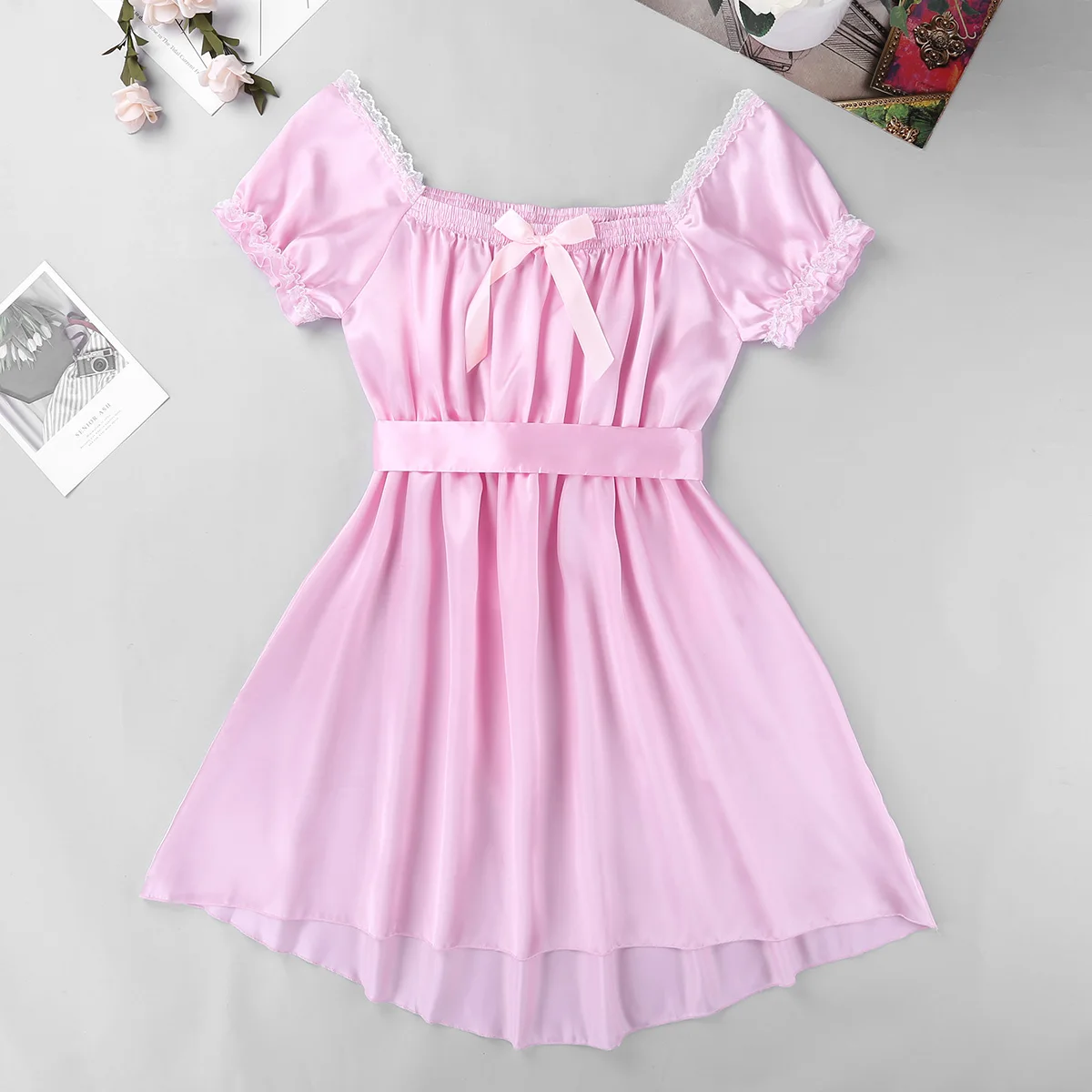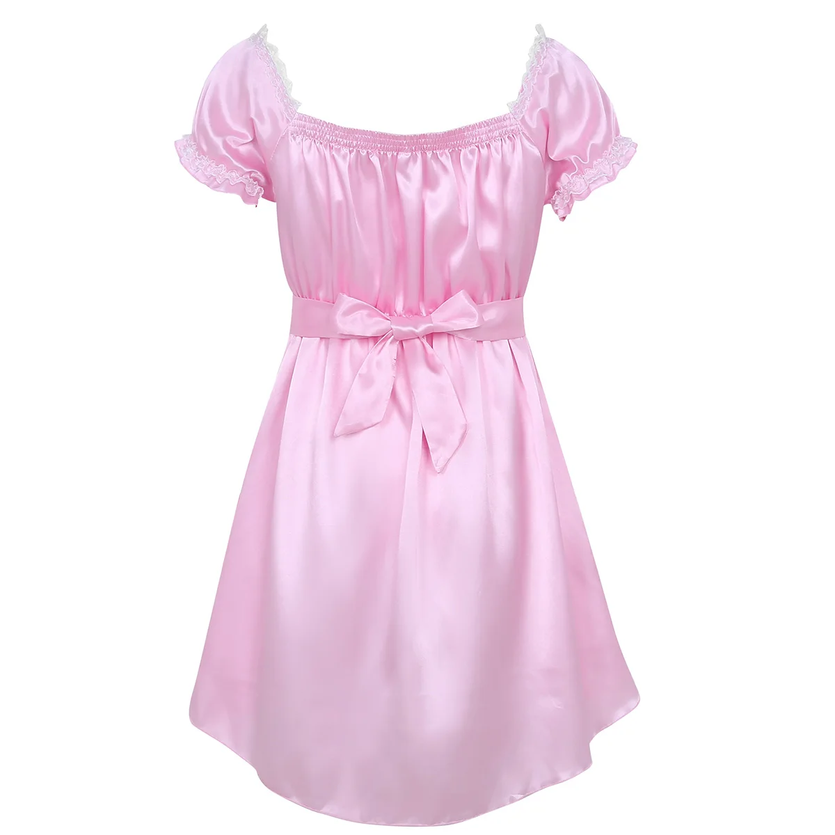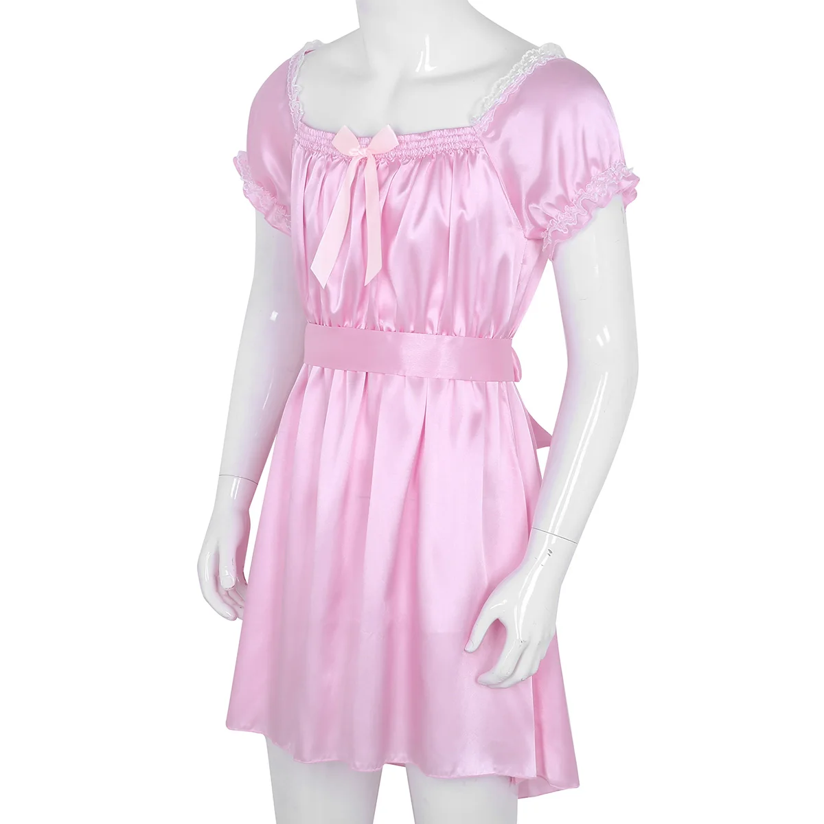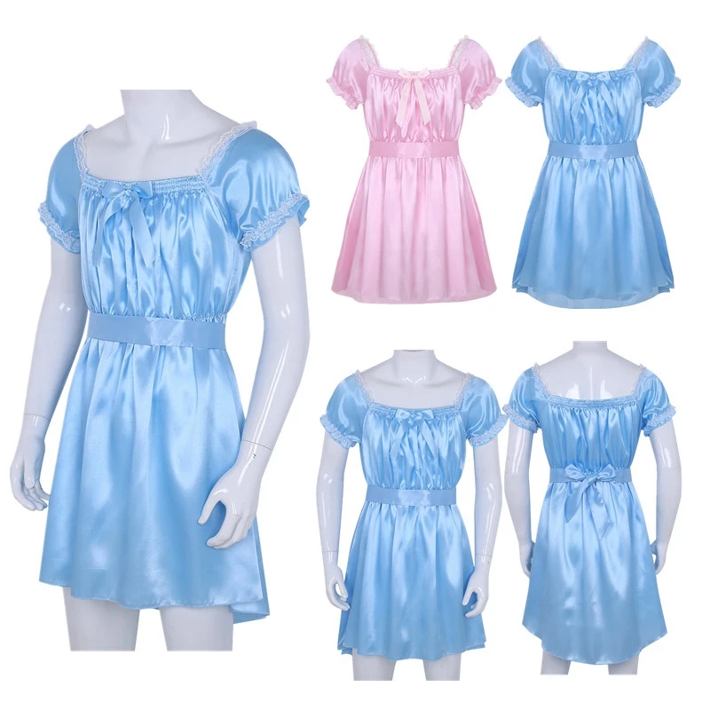 Сексуальное женское белье для мужчин, атласное кружевное белье для трансвеститов, бюстгальтер, платье для сна, нижнее белье, блестящее нижнее белье, сексуальное платье, сексуальный костюм для геев, экзотическое платье для Babydoll