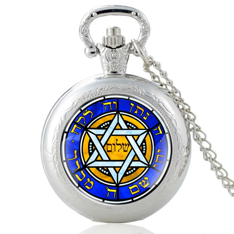 Уникальные Серебристые винтажные кварцевые карманные часы с изображением звезды Давида в иудаизме, часы с подвеской, мужские и женские часы со стеклянным куполом, ожерелье, подарки