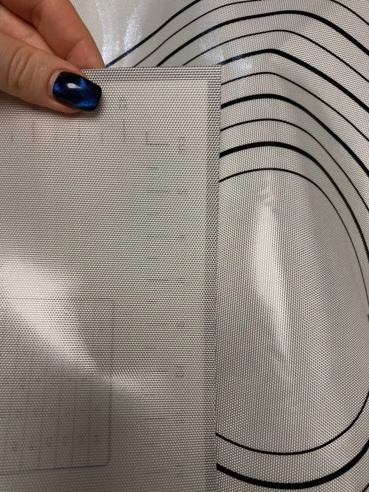 Хороший армированный тканью коврик. Покрытие силикон, не для выпекания.