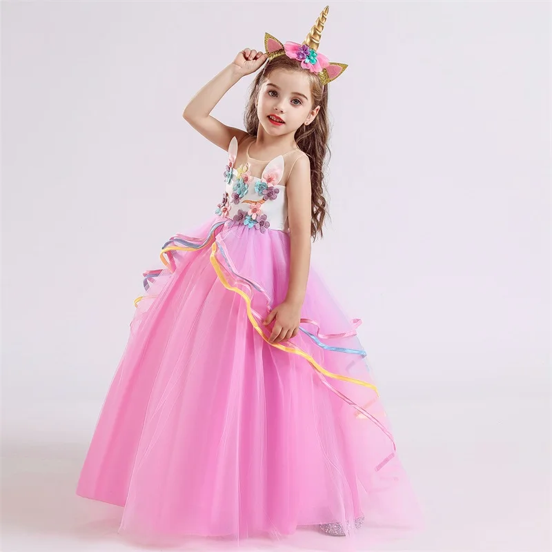 Платье принцессы с единорогом, Детские платья для девочек, свадебное вечернее детское платье, От 5 до 14 лет