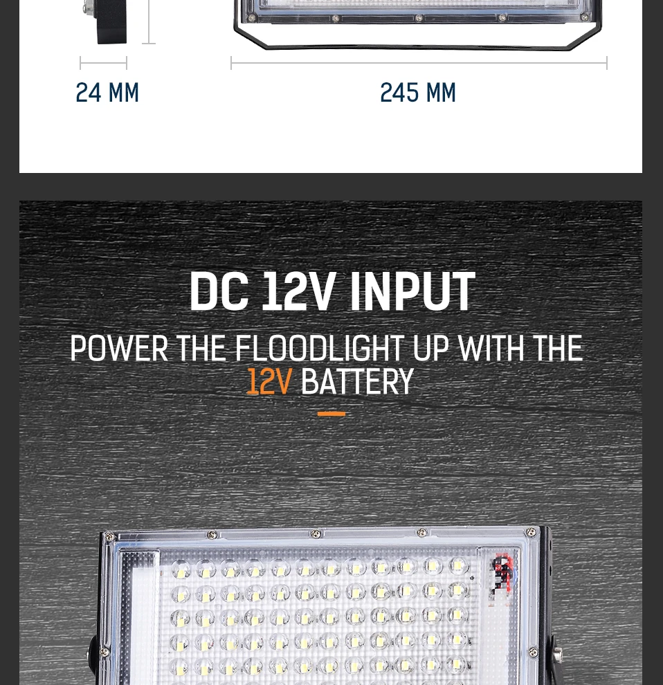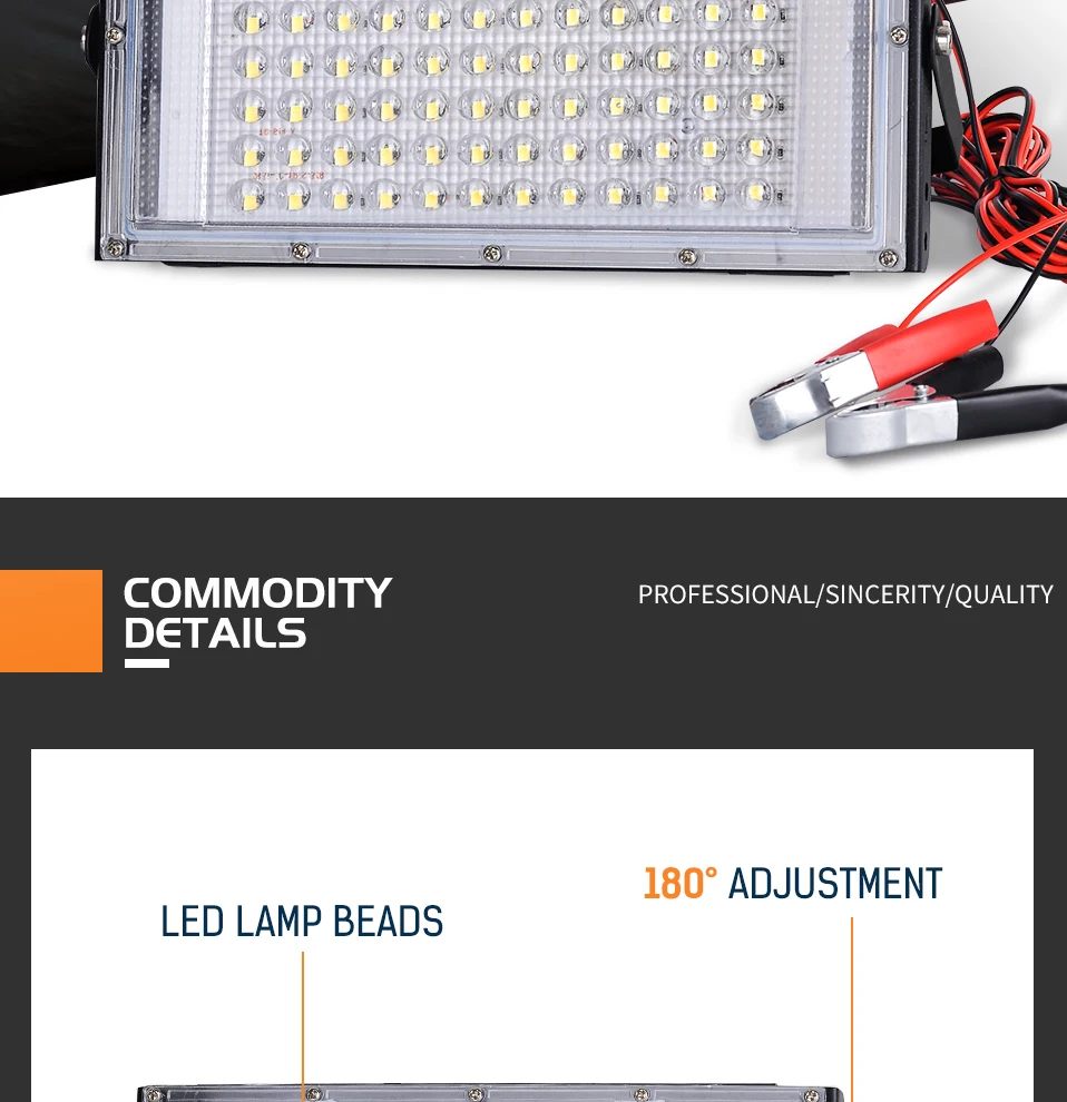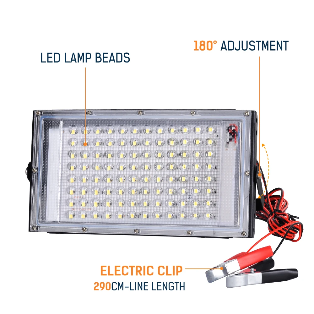 Светодиодный прожсветильник с зажимом крокодила, 100 Вт, 12 В постоянного тока