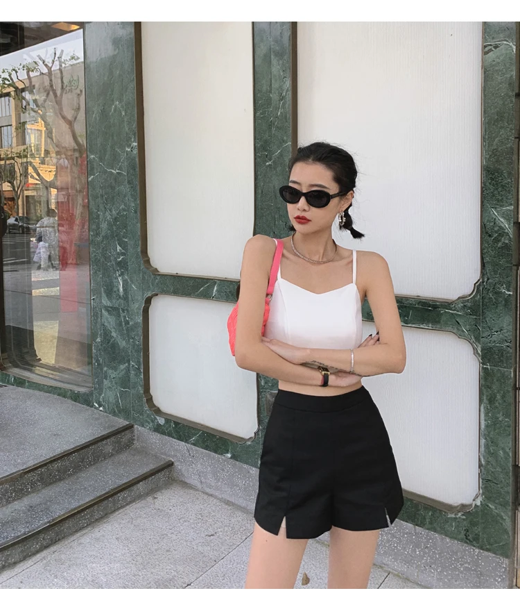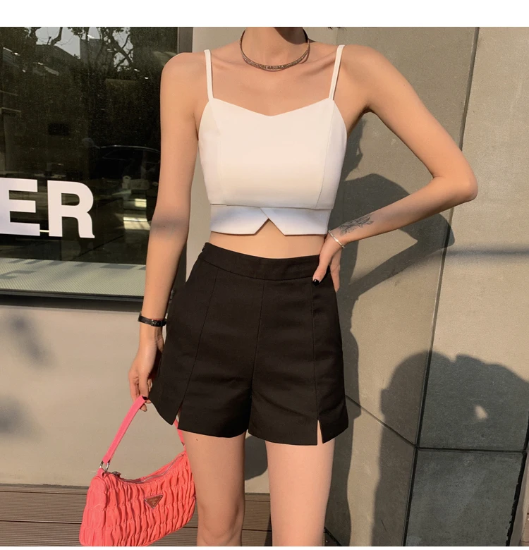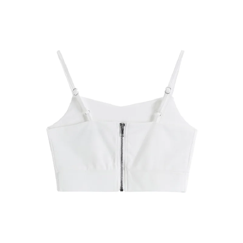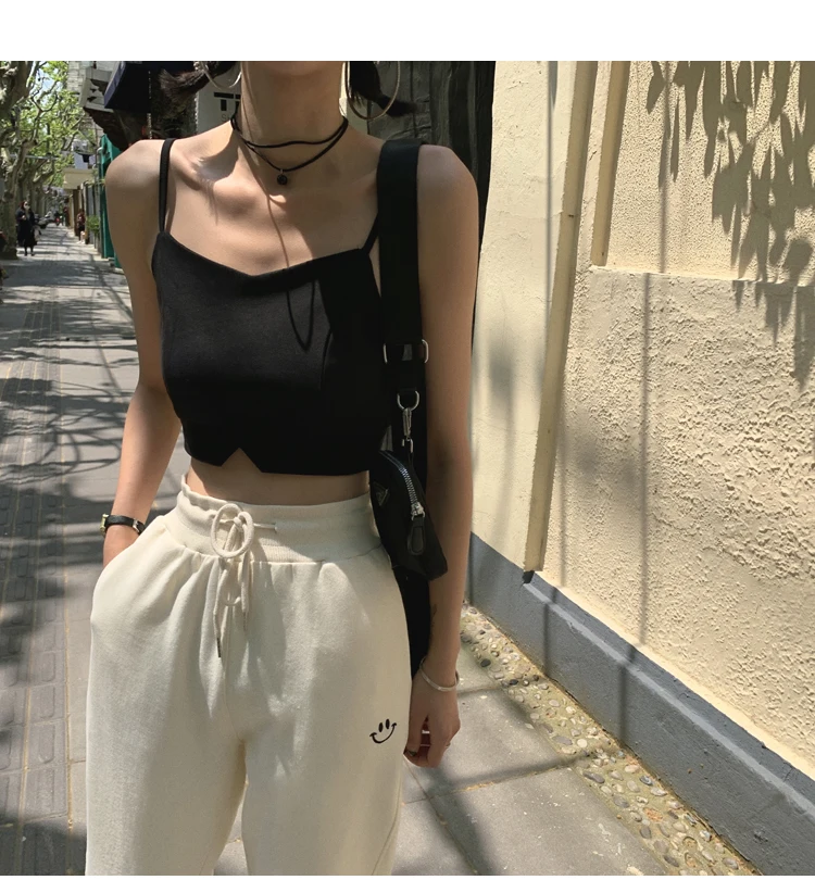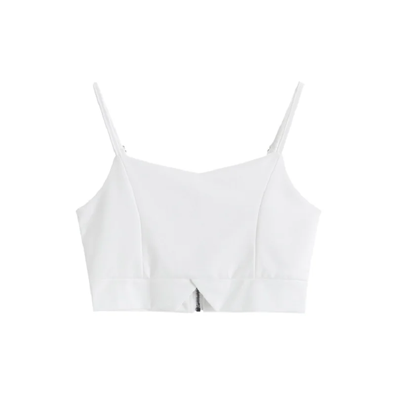 Кроп-Топ женский с V-образным вырезом, бесшовный Приталенный жилет из полиэстера, без рукавов, на молнии сзади, подтяжки, белый черный, лето 2020