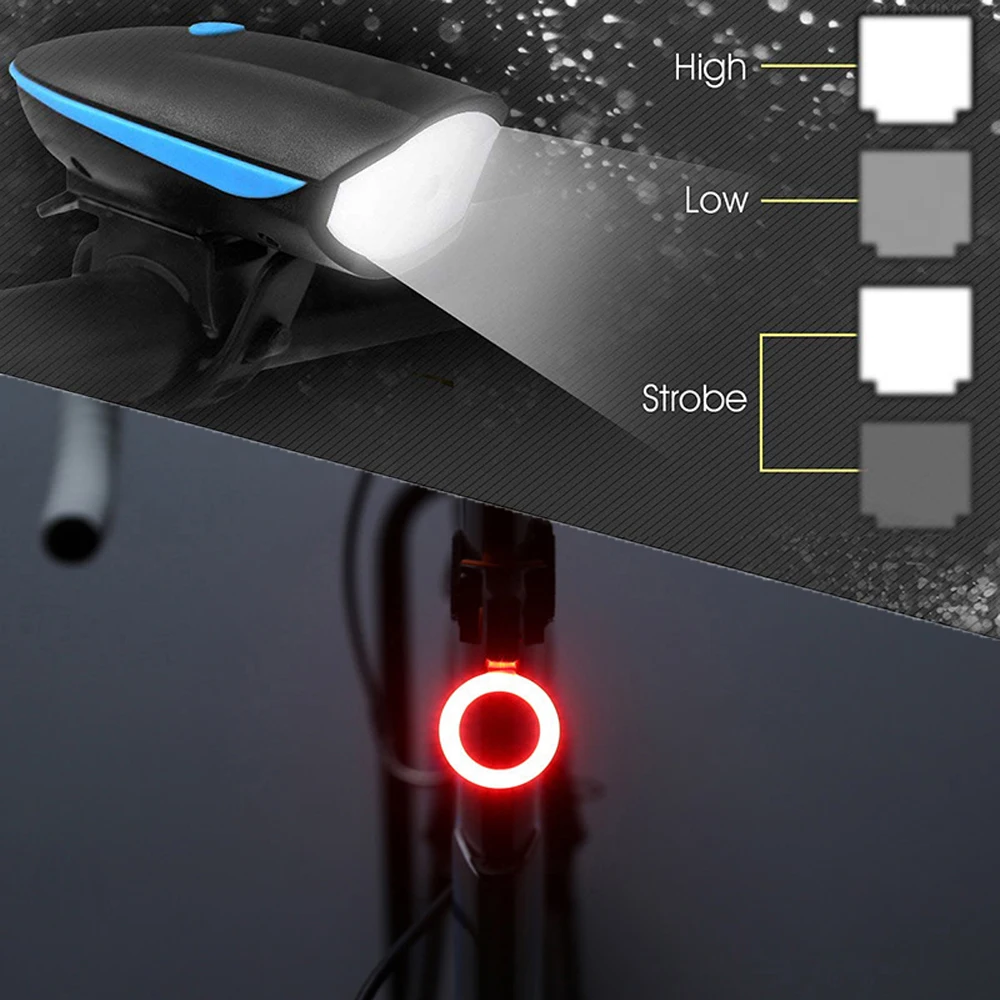 Велосипедный звонок с USB-зарядкой, фонарь на голову, многофункцион...