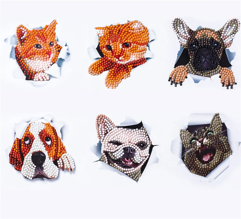 Наборы наклеек с изображением котов и собак, для детей, сделай сам, искусство, ремесло, животные, Алмазное искусство, мозаичные наклейки по номерам, наборы для детей