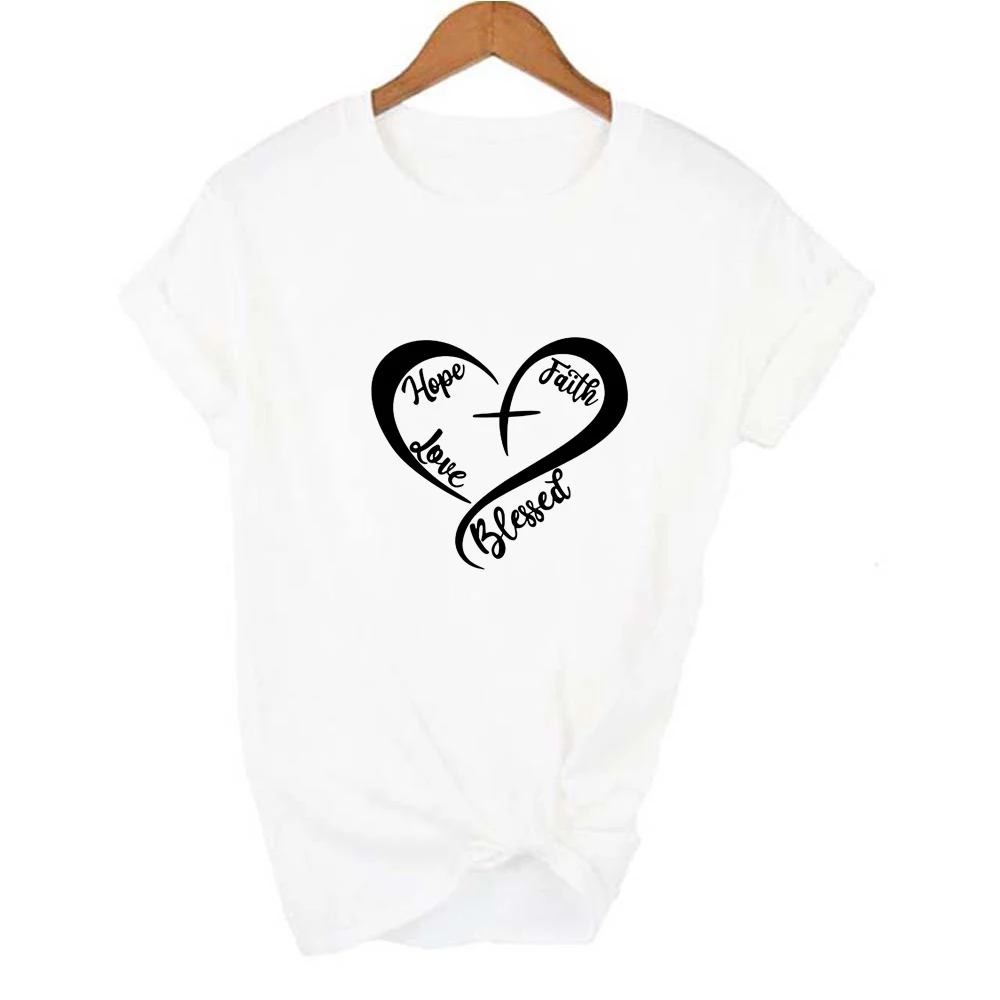 Вера Надежда Любовь благословенное сердце принт Женская летняя футболка Христианский Крест Harajuku футболка с графическим рисунком Иисус повседневные топы Camisetas