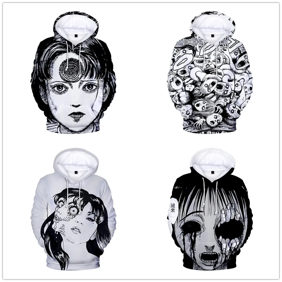 Толстовка с капюшоном Junji Ito для мужчин и женщин, японский пуловер с 3D принтом комиксов манга, уличная одежда, повседневный Свитшот