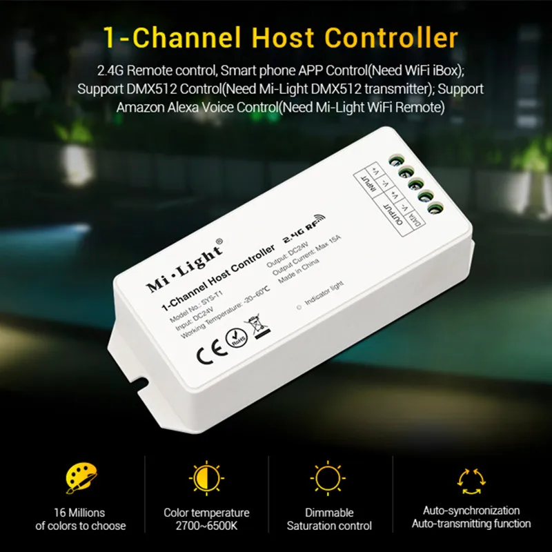 Название продукта: 1-канальный хост-контроллер Номер модели: SYS-T1 Входное напряжение: DC24V Рабочая температура: -20 ~ 60 °C Выходное напряжение: DC24V Выходной ток: макс. 15а Выходная мощность: Макс 360 Вт Расстояние управления: 30 м