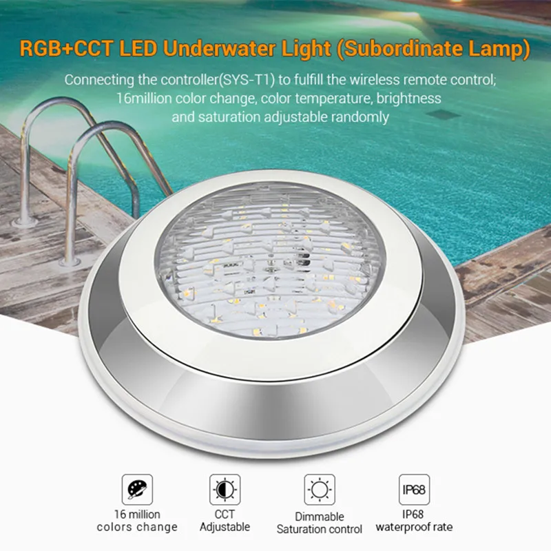 Светодиодный подводный светильник Mi, 12 Вт, RGB + CCT, водонепроницаемый, подчиненный светильник для телефона, приложение с регулируемой яркостью, 24 В, Wi-Fi контроллер, дистанционное управление, ip68