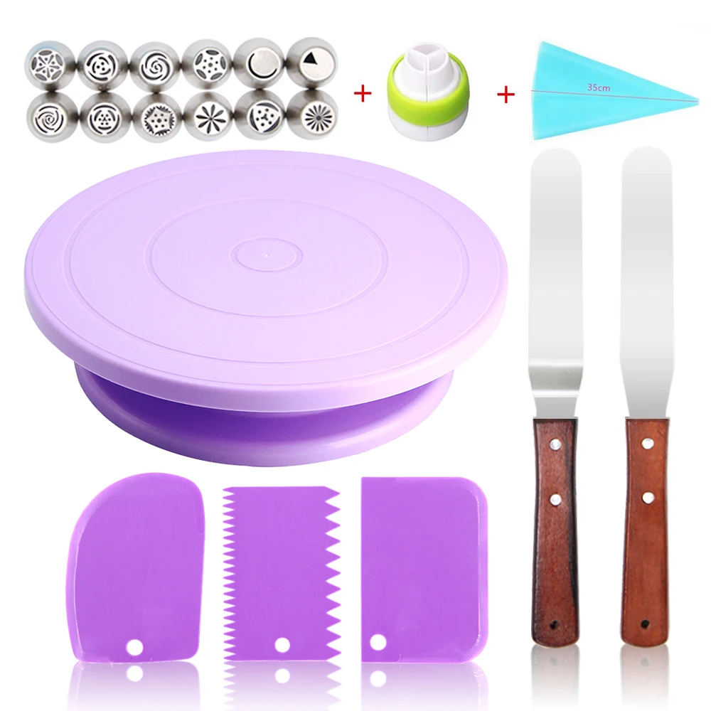 Пластиковый поворотный нож для торта, 15 шт.компл., вращающийся пластиковый нож для торта, кремового украшения, подставка для пирожных вращающийся стол, сковородка "сделай сам" инструмент для выпечки