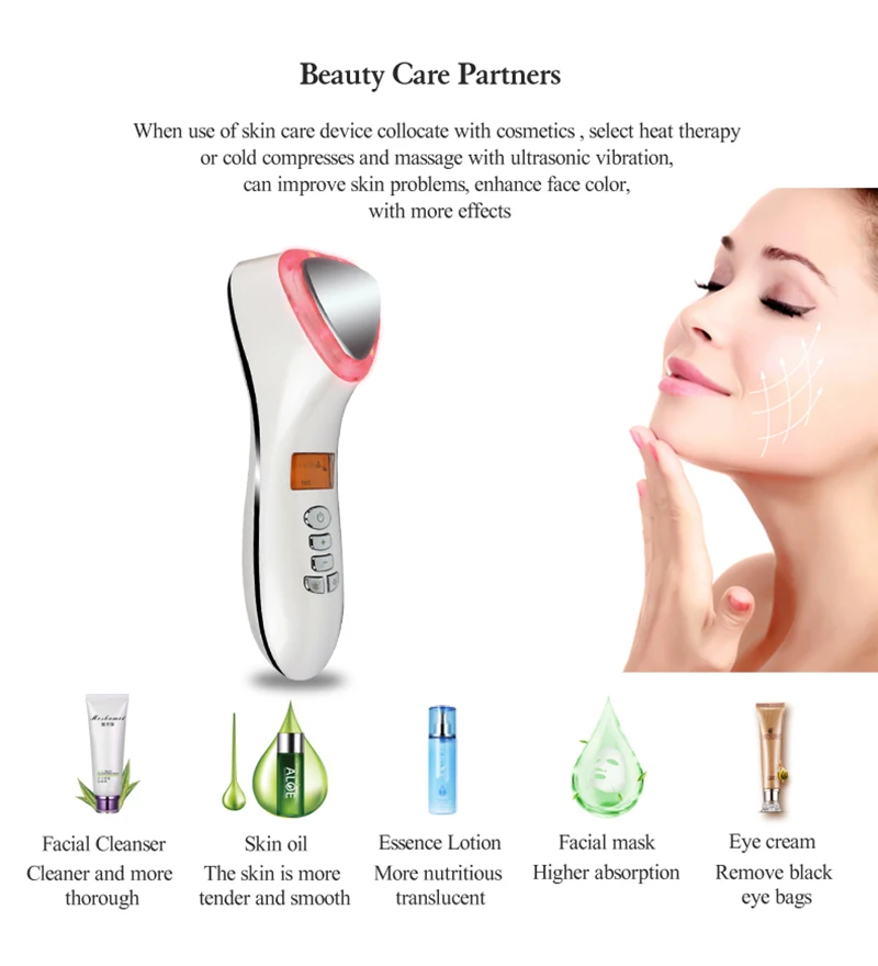 Прибор для ухода за кожей лица ультразвуковой, синего и красного светильник