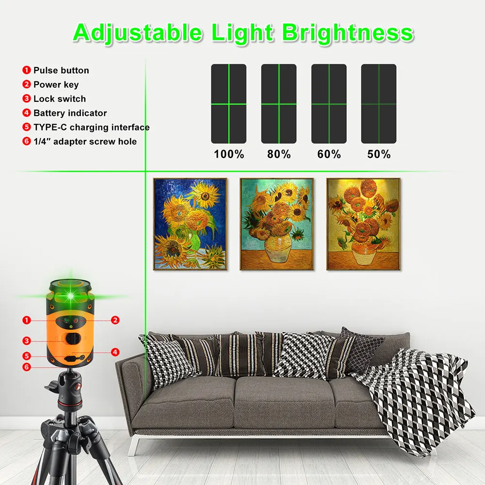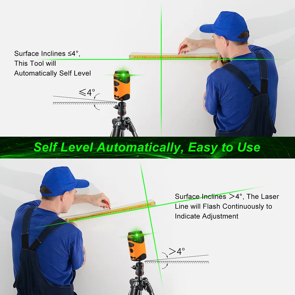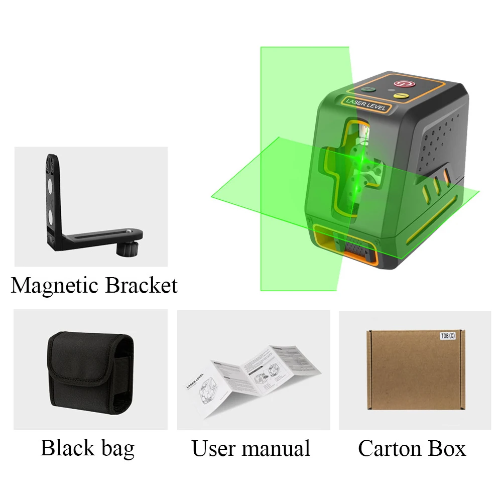 Зеленый лазерный уровень с 5 линиями самонивелирующийся с импульсным режимом для работы с лазерным приемникомХарактеристики продукта:Защита от пылиВодонепроницаемостьЧистсветильникЗапираемый маятникСамовыравнивающийсяРежим энергосбереженияС импульсным режимом, работа с приемникомСпецификация:Кол-во лазерных диодов: дваЦвет луча: зеленыйМощность лазера (в/в): 30 мВт/15 мВтТочность (в/в): 3 мм на расстоянии 10 мДиапазон автоматической компенсации: 4 ° ± 1 °Рейтинг IP: IP54Класс лазера: класс 2Разъем: резьба 1/4'Рабочая температура: -10 ~ 500 °CУгол излучения (в/в): 360 °/120 °Источник питания: Встроенный литиевый аккумулятор 2000 мАчВремя работы: 8 часовУпаковочный лист:1 лазерный уровень1 Магнитный L-образный кронштейн1x usb-кабель Typc1x Руководство пользователя на английском языке1x сумка CanvonЛазерный уровень с 2 линиями зеленого луча, самонивелирующийся с импульсным режимом, работает для лазерного приемникаХарактеристики продукта:Защита от пылиВодонепроницаемостьЧистсветильникЗапираемый маятникСамовыравнивающийсяРежим энергосбереженияС импульсным режимом, работа с приемникомЦвет луча: зеленыйДальность лазера: 505 ~ нм (зеленый луч)Точность (в/в):3 мм на расстоянии 10 мДиапазон автоматической компенсации: 4 ° ± 1 °Рейтинг IP: IP54Класс лазера: класс 2Разъем: резьба 1/4 дюймаРабочий диапазон: около 30 м (зеленый луч)Рабочий диапазон с приемником: ДаБатарея: батарея 4xAA (не входит в комплект)Время работы: Первая передача около 40 часов, десятая передача около 180 часовРабочий диапазон температур: -10 ℃ ~ + 50 ℃Диапазон температуры хранения: -25 ℃ ~ + 70 ℃Комплектация1 лазерный уровень (без батареи)1 Регулируемый магнитный L-образный кронштейн1x Руководство пользователя на английском языке1 сумка