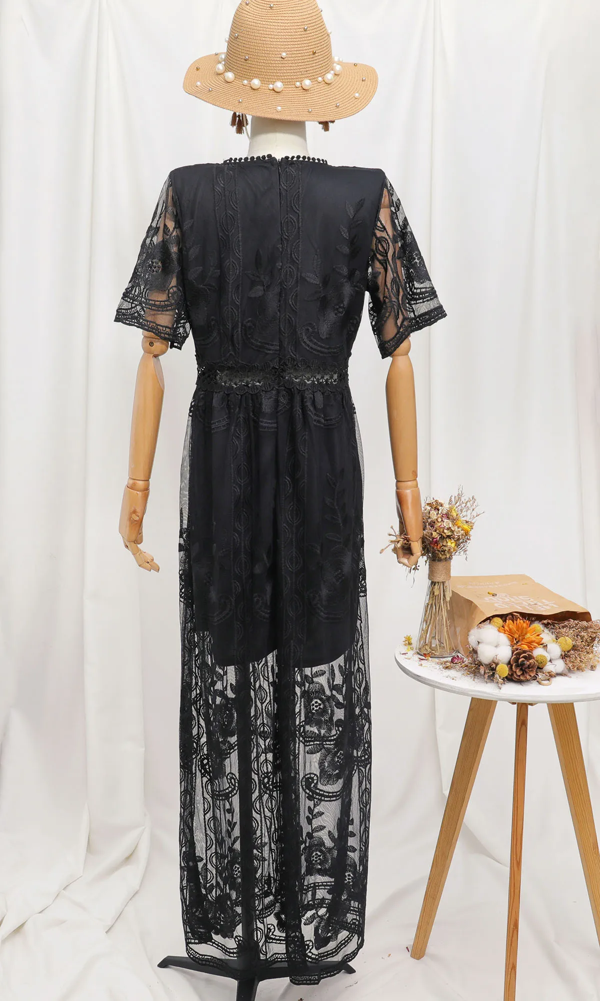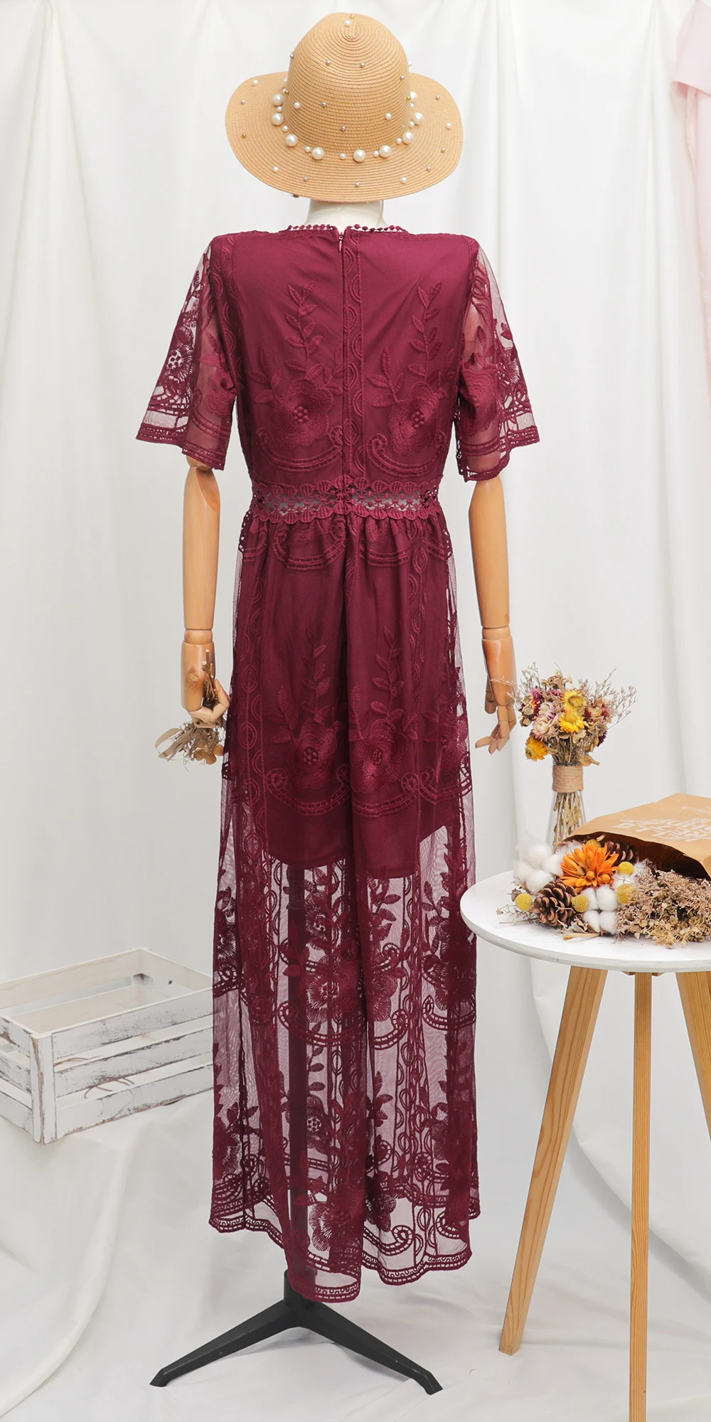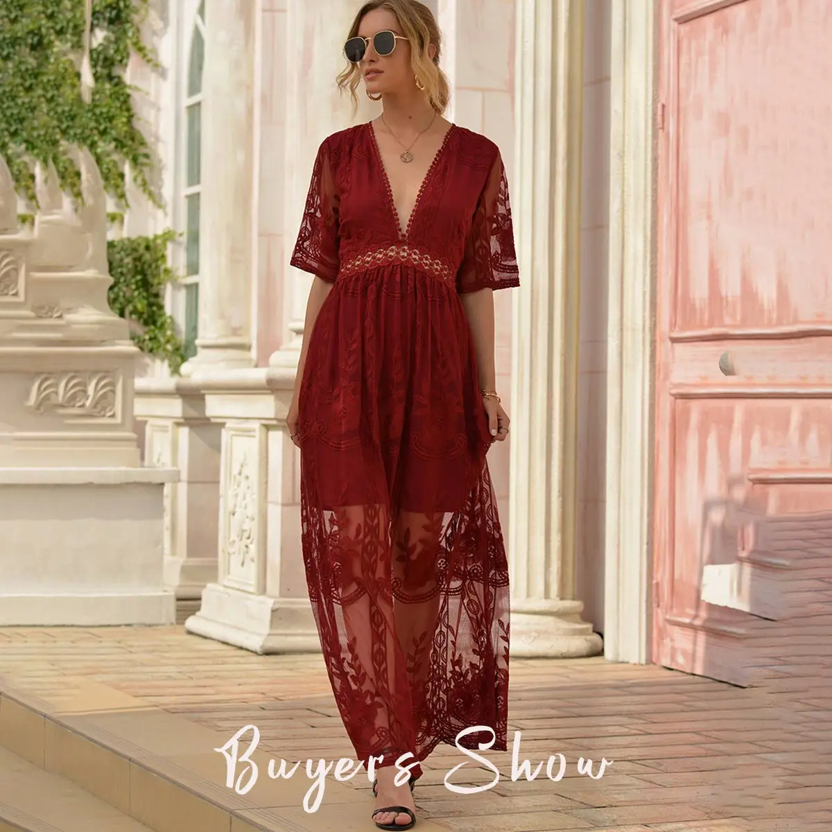 Кружевное платье красивое, мне нравится, качество кажется хорошим, и оно очень длинное.