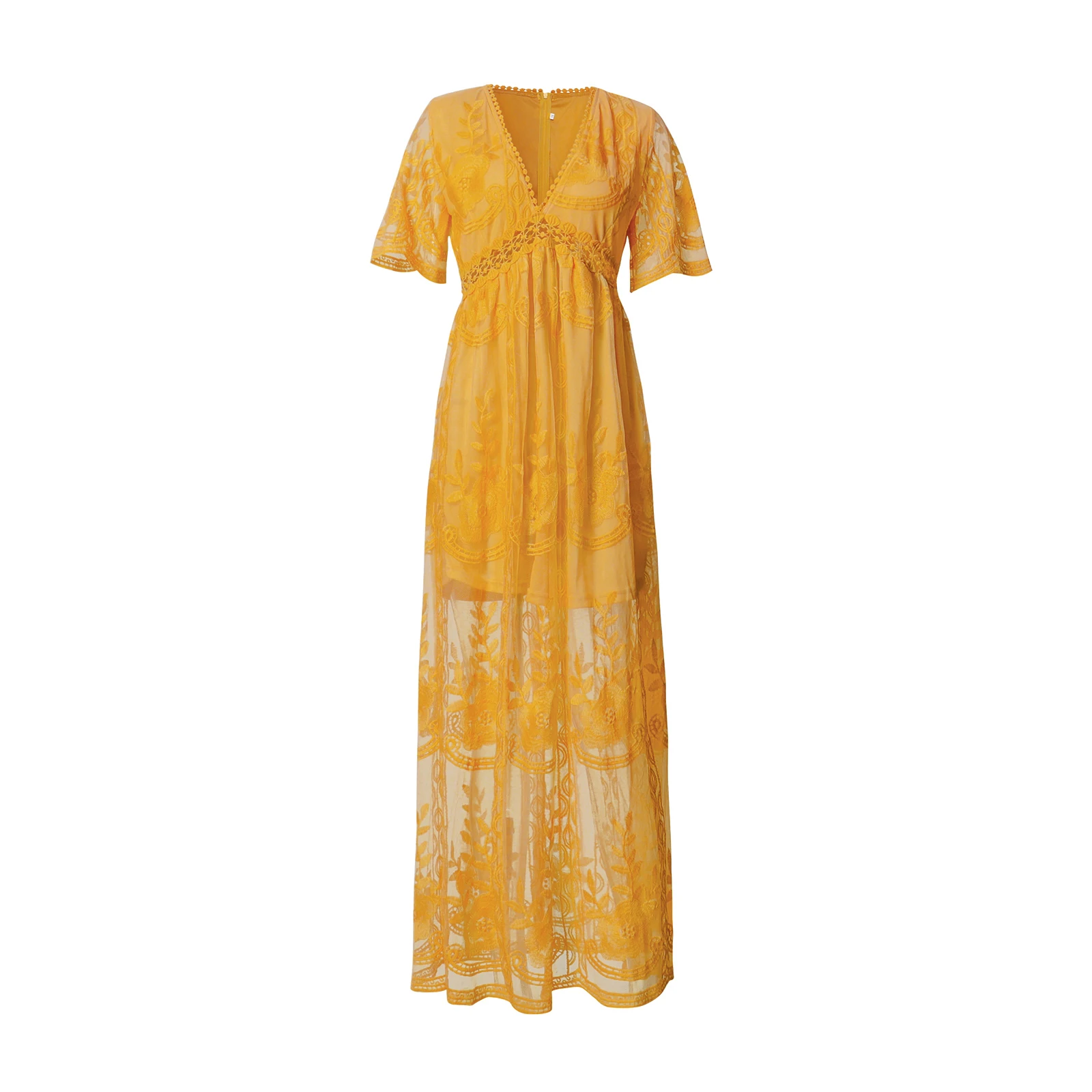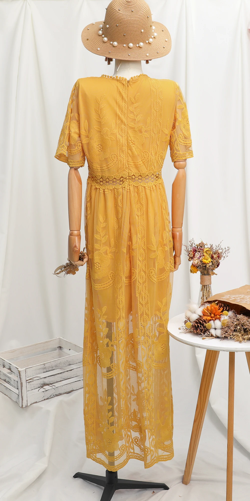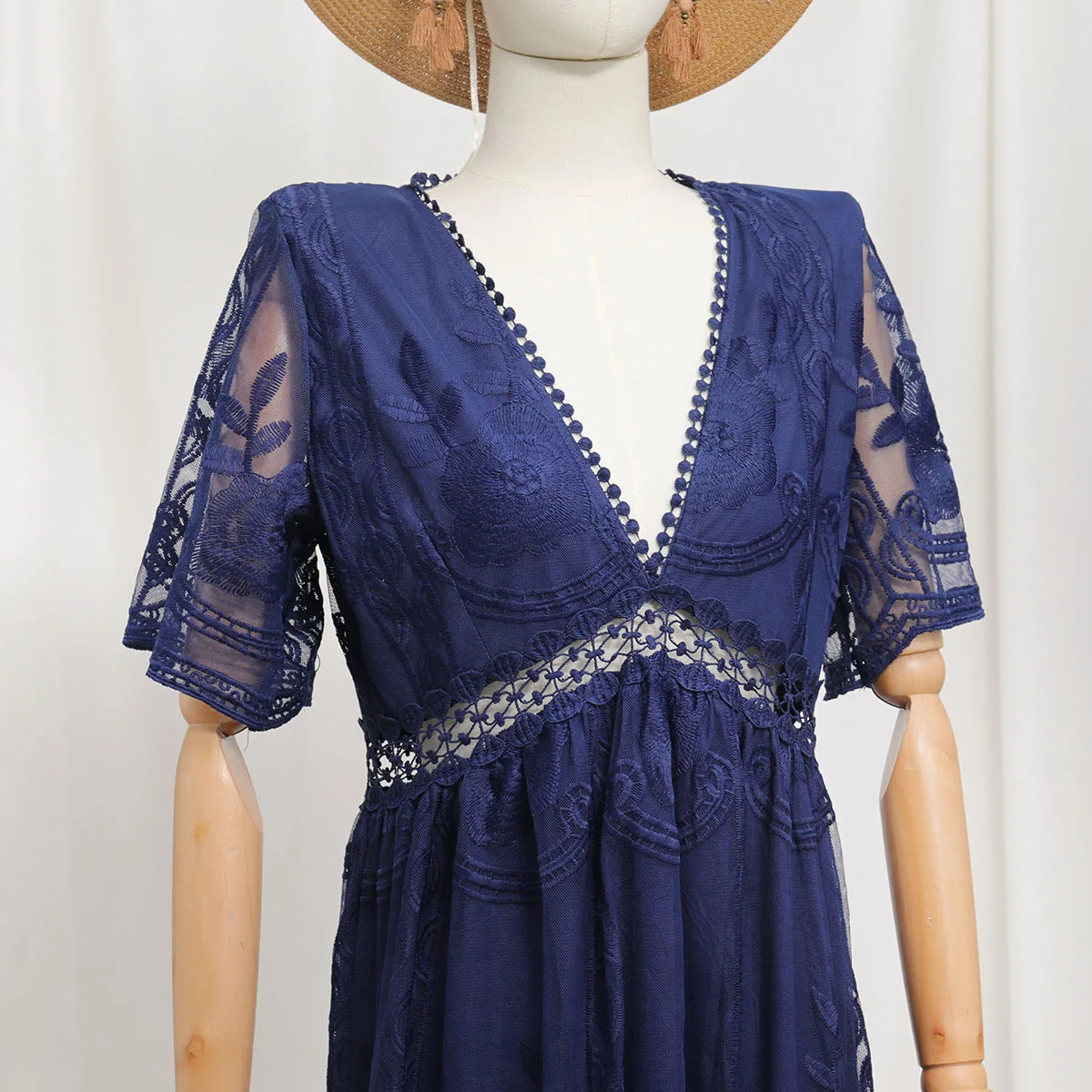 Кружевное платье красивое, мне нравится, качество кажется хорошим, и оно очень длинное.