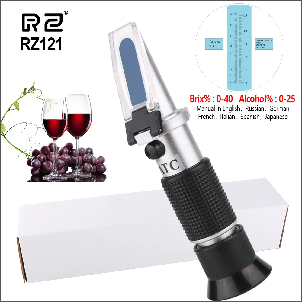 Рефрактометр RZ для красного вина, ручной автоматический Ареометр для вина, 0 40% алкоголя, 0 25%, рефрактометр для фруктового сока, вина, сахара
