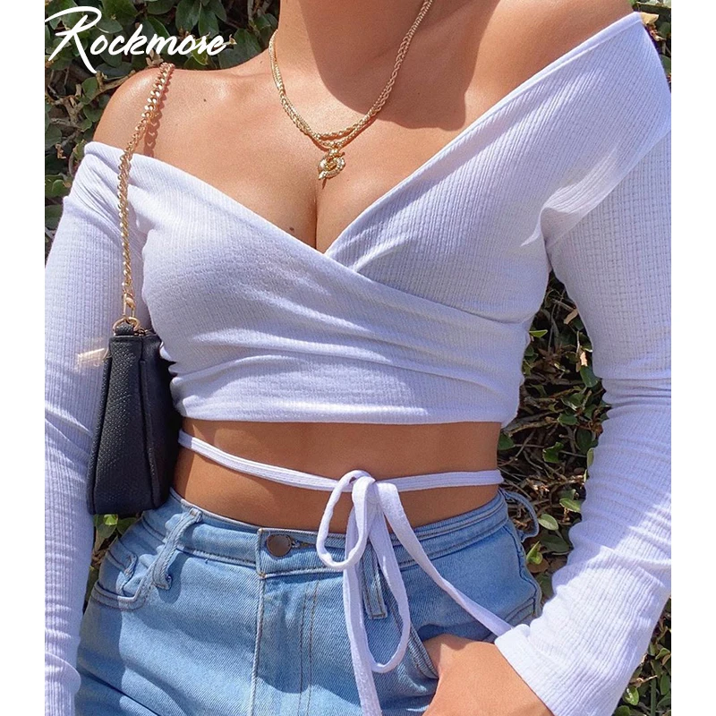 Женский топ в рубчик Rockmore, прозрачный сетчатый топ с открытыми плечами, с глубоким вырезом, с длинным рукавом, для осени