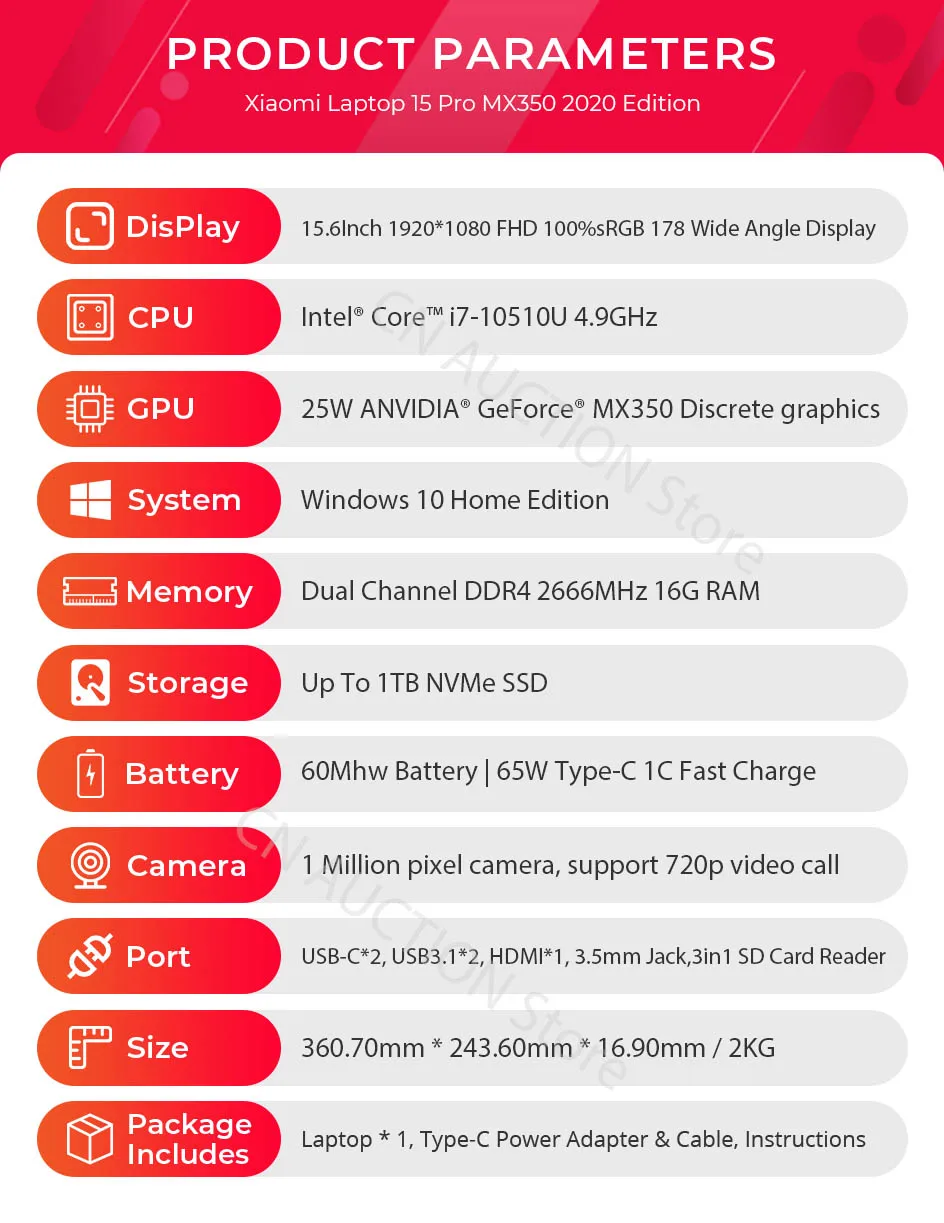 Xiaomi Pro 15 ноутбук MX350 Intel Core i7-10510U 16 Гб ТБ SSD 100% sRGB компьютер ноутбук ПК с подсветкой клавиатуры отпечаток пальца
