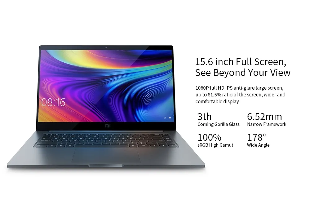 15,6-дюймовым экраном, дисплей размером 344,16 мм × 193,59 мм, ультра-узкой рамкой: 6.52mm2, ультра-высокое соотношение экрана: 81.5%FHD full HD экран, разрешение: 1920 × 1080 (142ppi), 178 ° Широкий угол обзора, 300 нит яркость 3800: 1 контрастность, 16:9 широкоформатный экран, 100% sRGB цветовая гаммаШирокоугольный жесткий экран, Corning®Горилла 3-го поколения®Стекло, технология полной посадки