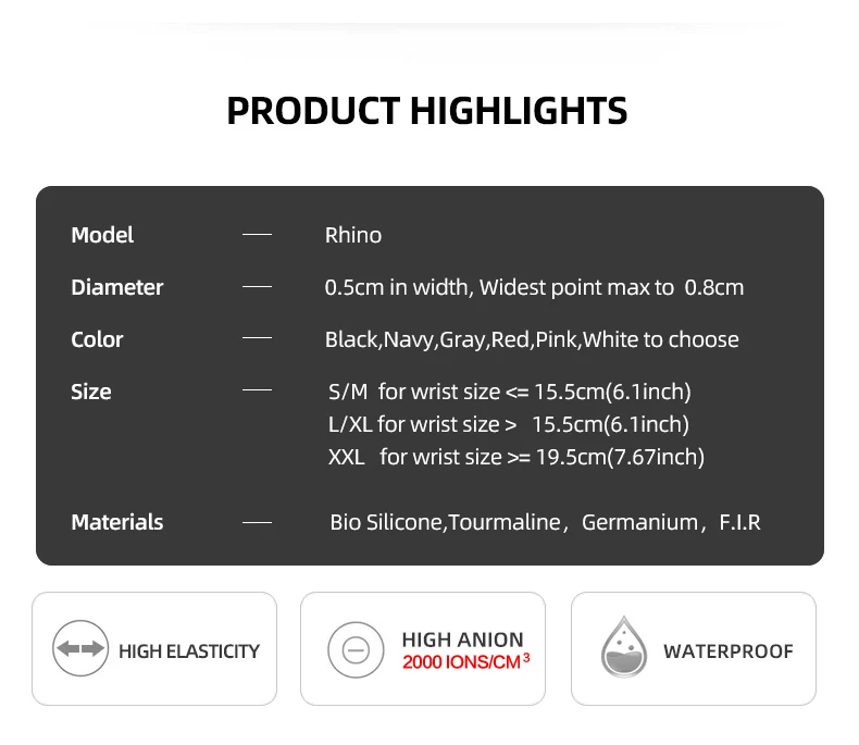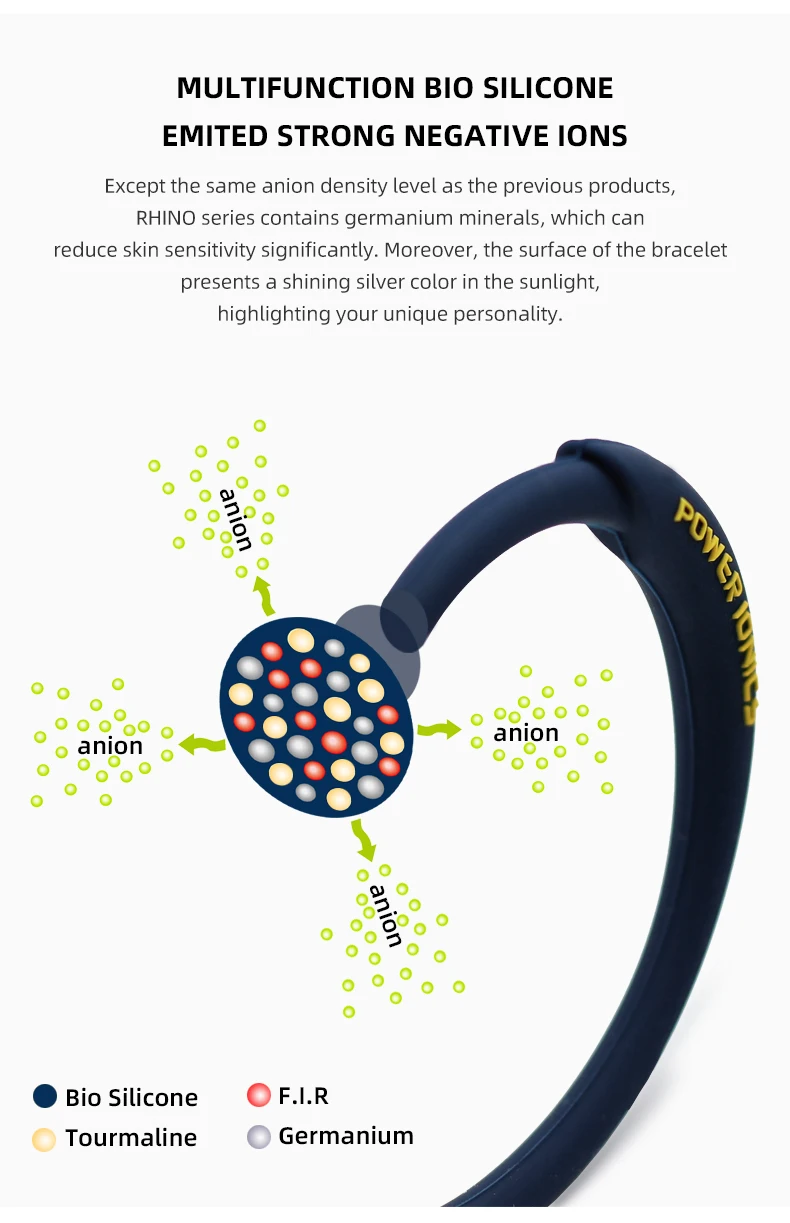 New Power Ionics Rhino Men Women men 2000Ions Waterproof Sports браслеты на запястья Energy Balance Body