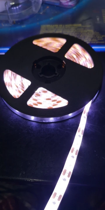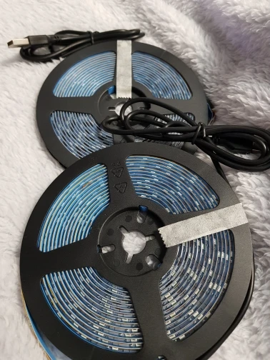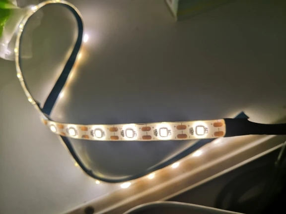 Светодиодная лента приобретается в теплом белом цвете. Он теплый белый, но не такой, как я ожидал. Достаточно гибкий, очень яркий и имеет двустороннюю ленту на спине для лучшего нанесения. В конце также есть usb-кабель. Отличное качество!