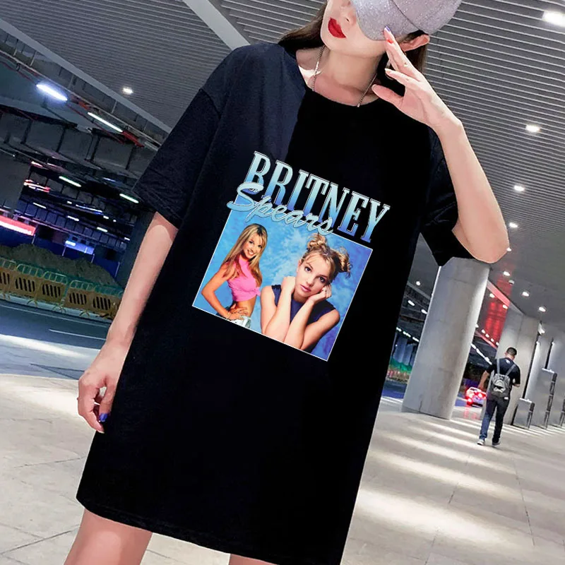 Большеразмерная футболка платье для женщин с коротким рукавом Спирс красивые фото принт мини уличная платье короткие женские повседневные платья