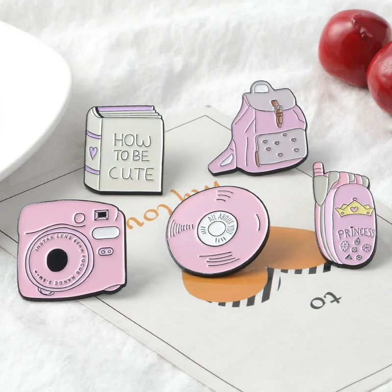 Корейский мультяшный Розовый школьный портфель телефон Брошь для женщин значок рубашка эмалированная брошь для мужчин Металлическая Булавка ювелирные изделия аксессуары