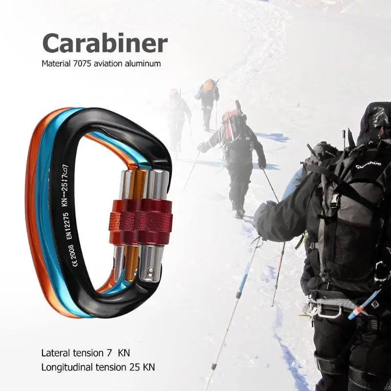 Профессиональный альпинистский карабин 25 кН, D-образный авиационный алюминиевый предохранительный замок для подъема на открытом воздухе, альпинистское снаряжение