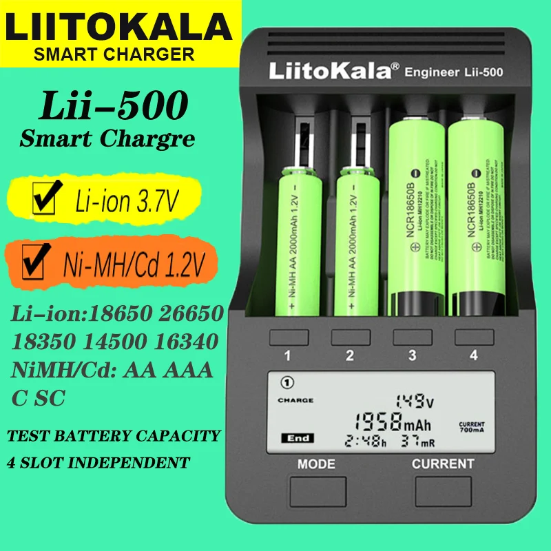 Liitokala Lii-500 18650 зарядное устройство 21700 26650 AA AAA 18350 18500 16340 17500 10440 lifepo4 pcb платы зарядка nitecore зарядное зарядное устройство акб зарядные устройства зарядкизарядки зарядное устройство