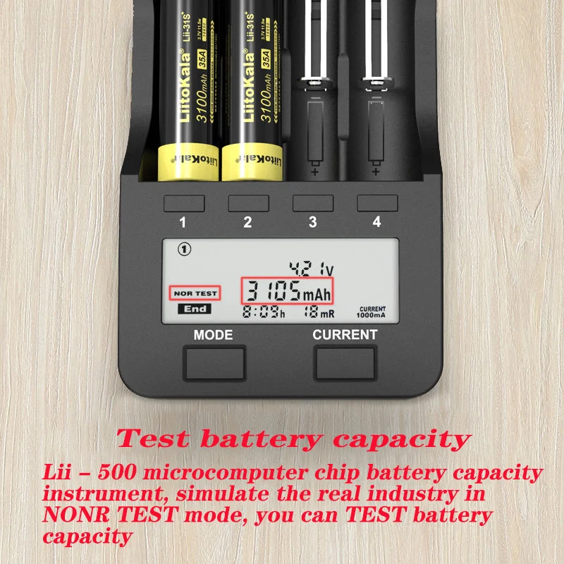 Спасибо за использование нашего products-lii-500, это высококлассное умное зарядное устройство с 4 каналами независимого тестирования емкости аккумуляторной батареи/обнаружения сопротивления внутреннего аккумулятора/счетчика/защиты от короткого замыкания, защита от перегрузки/температура/1,65 v Напряжение 1,65 v не может заряжать функция/usb выходным напряжением 5 В, И Активация батареи нулевого напряжения и т. д. десять больших функций, в то же время автоматическое своевременное отслеживание заряда батареи, процесс тестирования. Lii - 500 может быть заполнена различными типами цилиндрических литий-ионных батарей и aa / aaa цилиндрических никель-металл-гидридных батарей, широко используется в сильный светильник фонарей, электроинструментов, инструментов и метров, электронные продукты, такие как цифровая камера. Использование безопасного, легкого в транспортировке, мощного, вашего дома, туризма является хорошим помощником. Внешний вид: Один, предупреждение, 1. Зарядное устройство может использоваться только для цилиндрических литий-ионных батарей, никель-металлгидридных батарей, не перезаряжаемых литиевых железных фосфатных батарей; 2. Перед использованием внимательно ознакомьтесь с инструкциями, обратите внимание на рекомендации по зарядному току аккумуляторной батареи, не превышающие рекомендуемый зарядный ток; 3. Не используйте другой адаптер питания; 4. Когда зарядное устройство для погрузки и разгрузки может быть слабым, будьте осторожны, чтобы не сгореть. 5. Прекратите использование, отключите источник питания, удалите аккумулятор; 6. Может использоваться только в обычном интерьере. 7. Данные тестирования продукта приведены только для справки, фактическая ситуация, пожалуйста, обратитесь к профессиональному инструменту. Во-вторых, характеристики 1. 4 типа регулирования тока зарядки (300 мА/500 мА/700/700 мА); 2. Для различных спецификаций (18650/26650... / Aa / aaa) Зарядка аккумулятора одновременно; 3. Это зарядное устройство является блестящим с ЖК-экраном независимости, напряжение (v), текущее время (ma) (h). Параметры сопротивления емкости (mah) (mr) и глаз знать; 4. Режим зарядки, канал 4 работает независимо, можно выбрать другую зарядку тока и сделать вид, что это литий-ионный аккумулятор, никель-металл-гидридные батареи. 5. Быстрый тестовый режим, четыре канала могут быстро обнаружить емкость батареи, независимо от литий-ионного аккумулятора, никель-металл-гидридные батареи, должны работать независимо. Быстрое обнаружение емкости аккумулятора состоит из двух шагов (1, 2 с) 6. Ни тестовый режим, нормальный процесс тестирования емкости аккумулятора состоит из трех шагов (1 первый на полной зарядке, разрядка снова 2, 3 снова заполнена), процесс тестирования емкости батареи; 7. Зарядка и Быстрая проверка. / Также не могут работать три тестовых образца одновременно; Независимая зарядка/быстрое обнаружение/нормальная возможность обнаружения; 8. Различные функции защиты: перегрузка, короткое замыкание, температура, функция активации, напряжение 0 В, 1,65 в до 1,65 в не может заряжать функцию, плохое распознавание батареи и обратное подключение защиты аккумулятора. 9. Со стандартной функцией выхода USB 5 В/1000 мА: от 1 до 4 литиевых батарей с полным выходом USB, этот продукт nimh батареи не могут взять USB выход. 10. Оснащен специальным адаптером питания: входное напряжение постоя