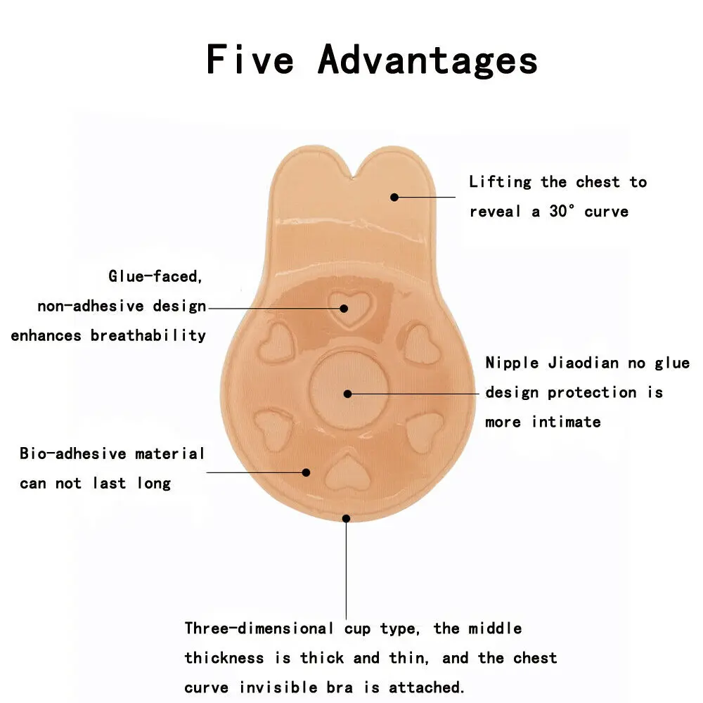 Силиконовые накладки на соски Стикини наклейки, многоразовые, с кроличьими ушками, клейкая невидимая лента для подтяжки бюстгальтера, 2 шт.1 пара