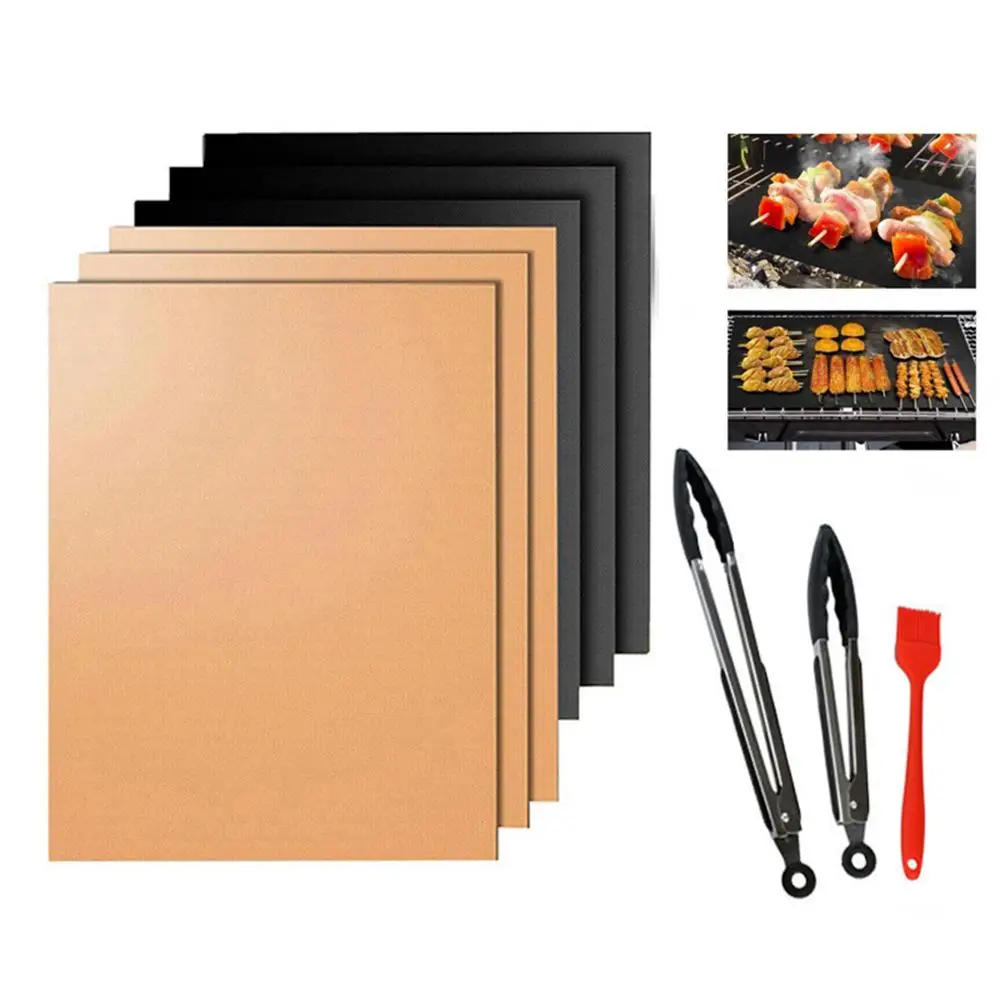 Антипригарный гриль-коврик для барбекю, термостойкий многоразовый коврик для барбекю на открытом воздухе, покрытие для выпечки, зажим, масляная щетка, аксессуары для барбекю