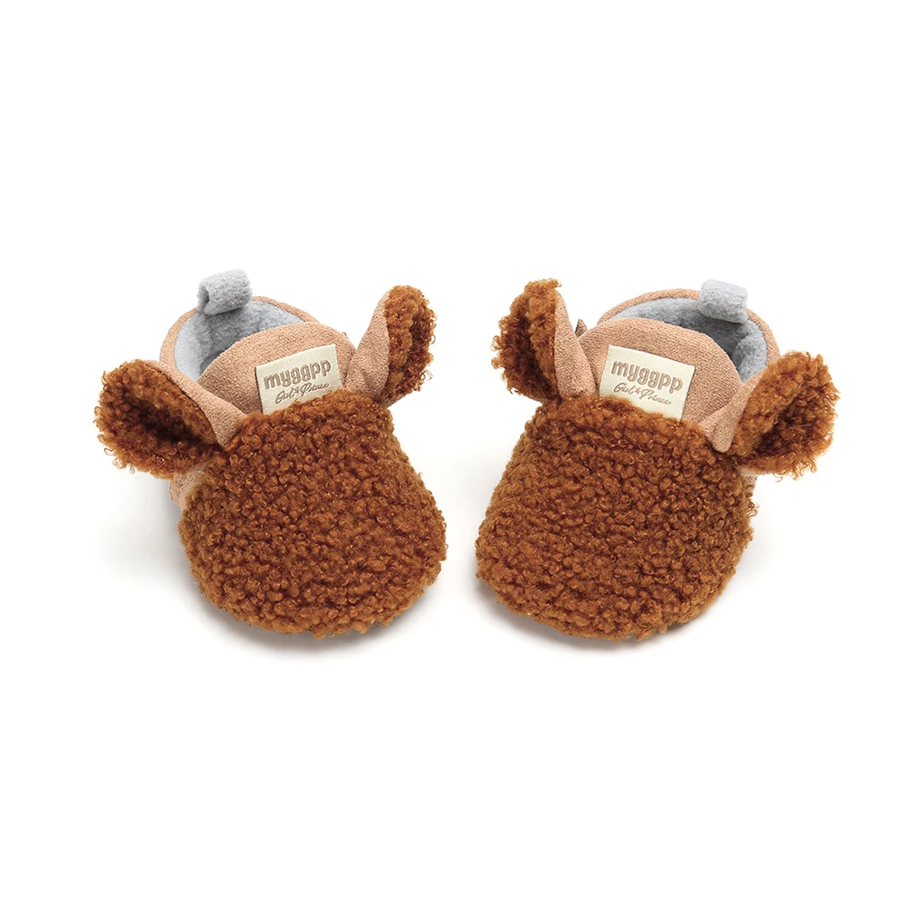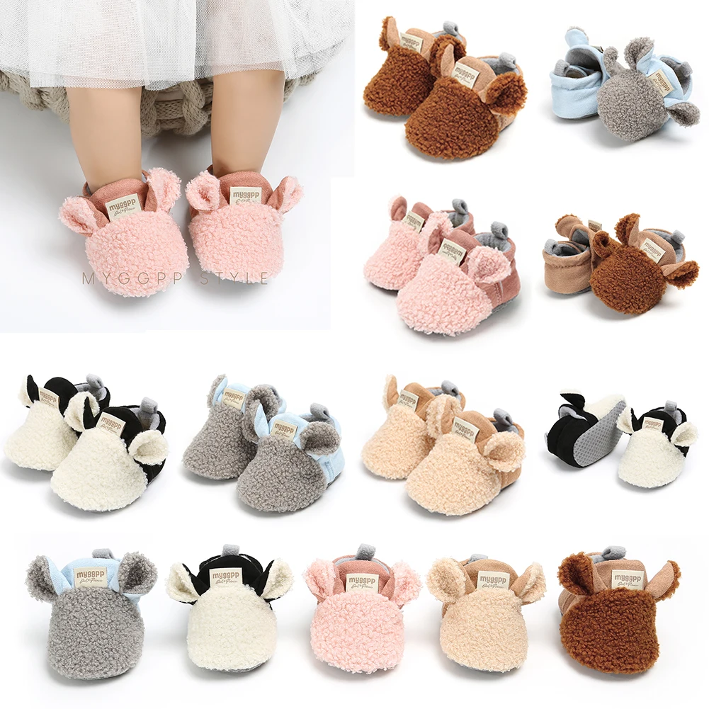 Pudcoco, новинка, обувь для новорожденных, для ползания, для мальчиков и девочек, тапки с ягненком, для тренировок, меховые зимние, с ушками животных, для первых шагов
