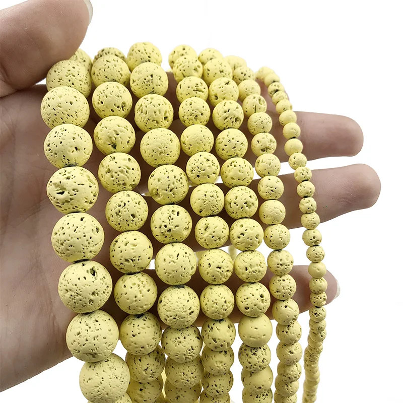 Светло-желтые лавовые бусины WLYeeS из натурального камня 4 6 8 10 12 мм, круглые резиновые бусины россыпью для самостоятельного изготовления женских ювелирных изделий, браслетов, сережек
