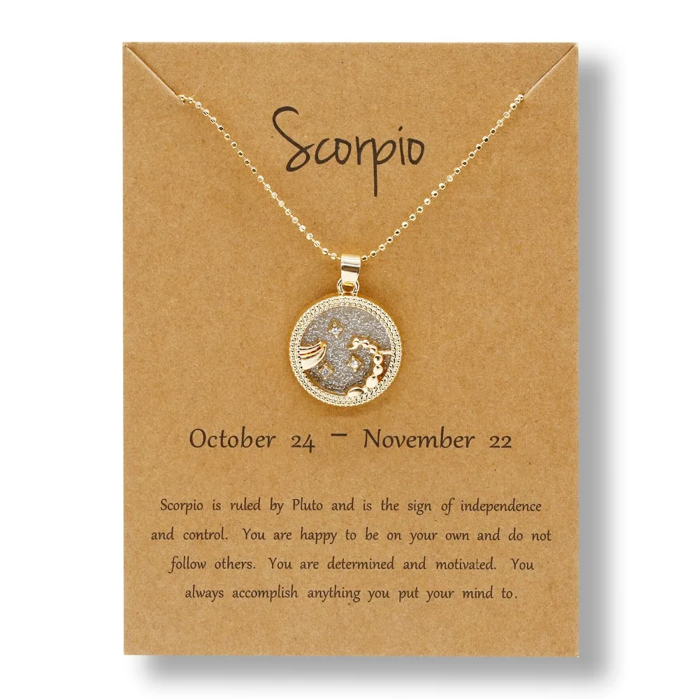 Оптовая продажа, Прямая поставка, 12 знаков зодиака, золотой кулон, ожерелье, Лев Скорпион, 12 созвездий, ювелирные изделия