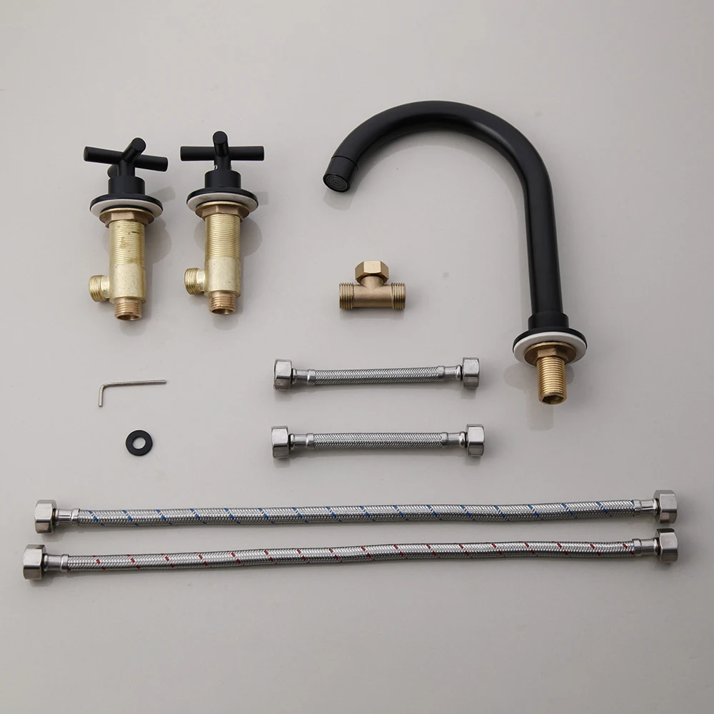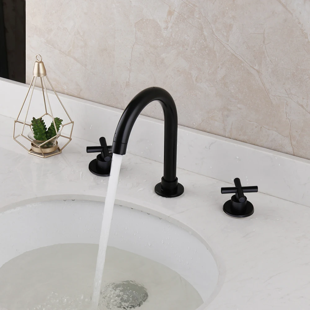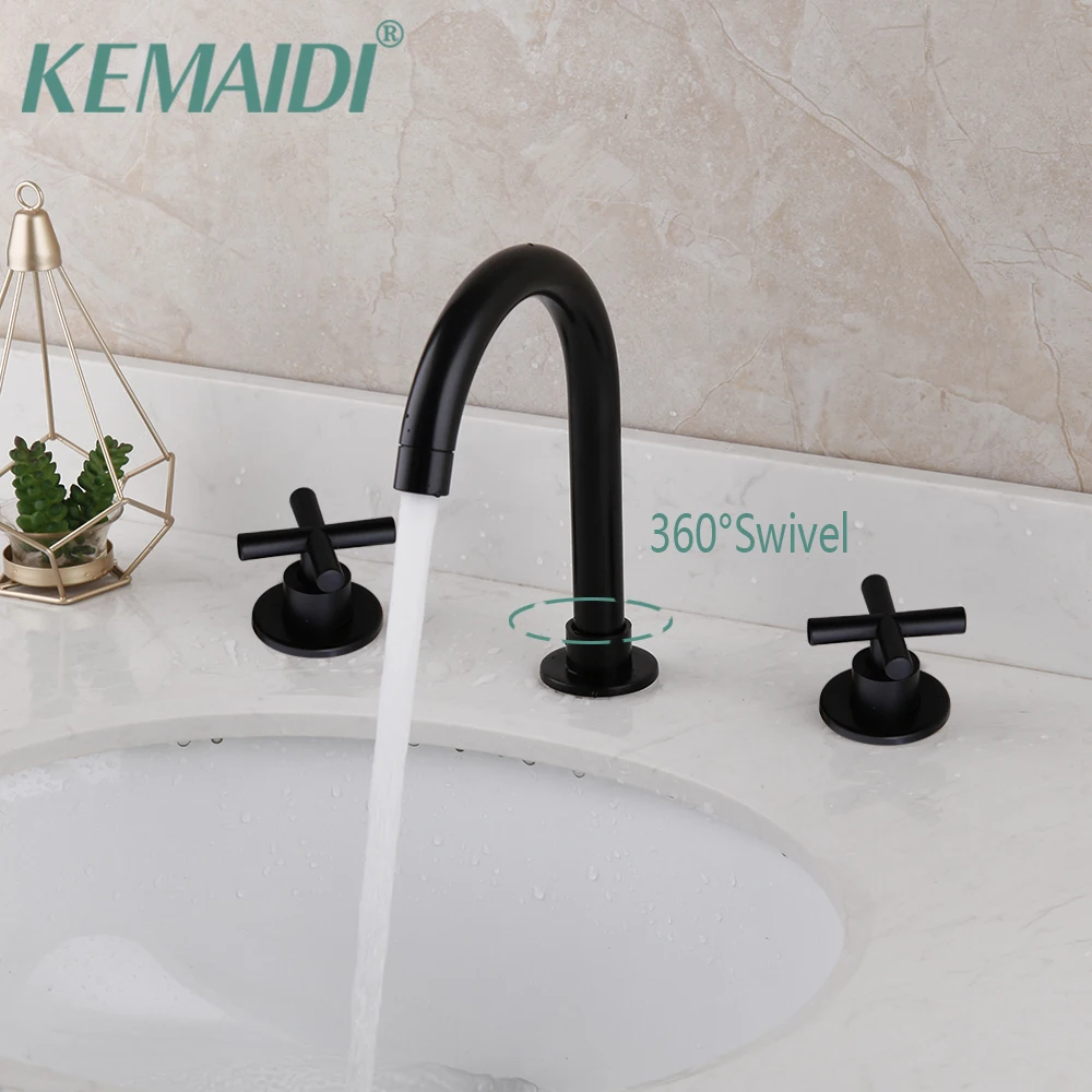 Матовый черный смеситель KEMAIDI для ванной комнаты, 3 шт. в комплекте, смеситель для раковины с двумя ручками, смеситель для воды с креплением на раковину, смеситель для горячей и холодной воды