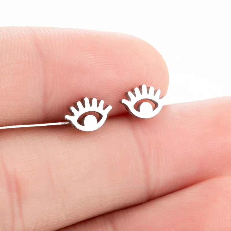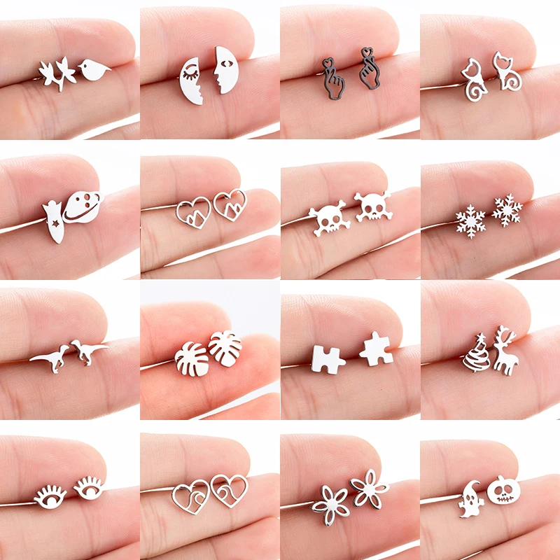 Женские серьги-гвоздики Hfarich из нержавеющей стали, золотистый глаз, луна, пазл, динозавр, снежинка, цветок, Череп, кошка, серьги в виде птиц, мини-гвоздики в подарок