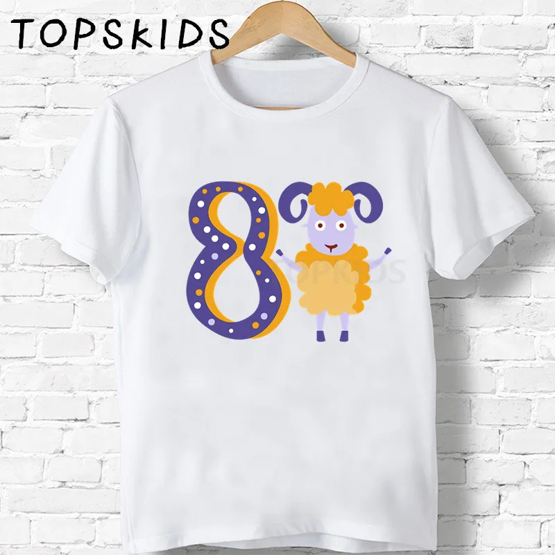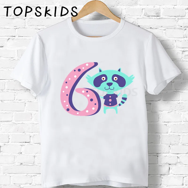 Футболка для мальчиков и девочек с принтом в виде животных на день рождения, с цифрами 1-9, 2020