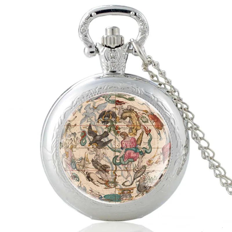 Уникальные Серебристые винтажные кварцевые карманные часы с изображ...