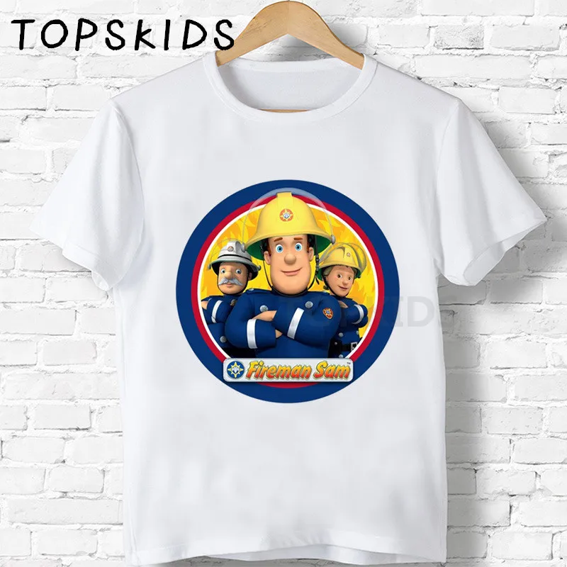 Детские футболки с мультяшным принтом пожарного, Сэм, для мальчиков и девочек, забавные детские топы, Детская летняя футболка с коротким рукавом, 2019