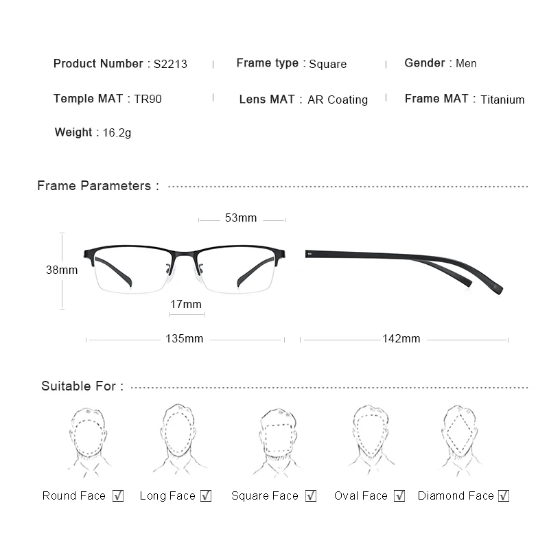 Оправа для очков Мужскаяженская из титанового сплава , S2252